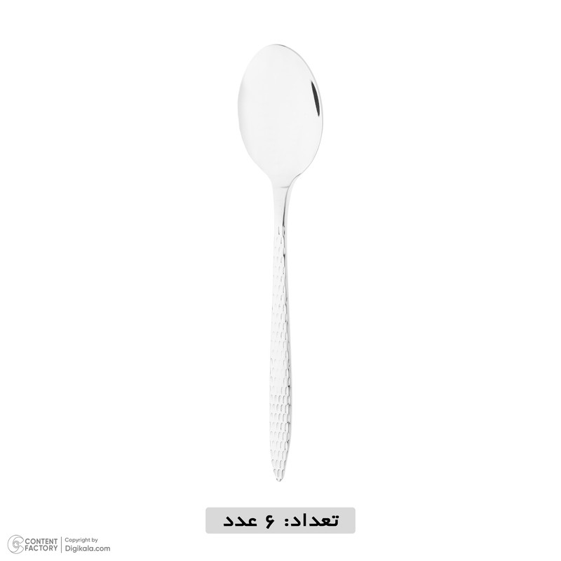 | سایر توضیحات | 6 عدد قاشق غذاخوری به ابعاد 21.5x4x0.35 و وزن 60 گرم - 6 عدد چنگال غذاخوری به ابعاد 22x3x0.35 و وزن 50 گرم - استیل 18/10 ضدزنگ - ضخامت 3.5 میلی متر |