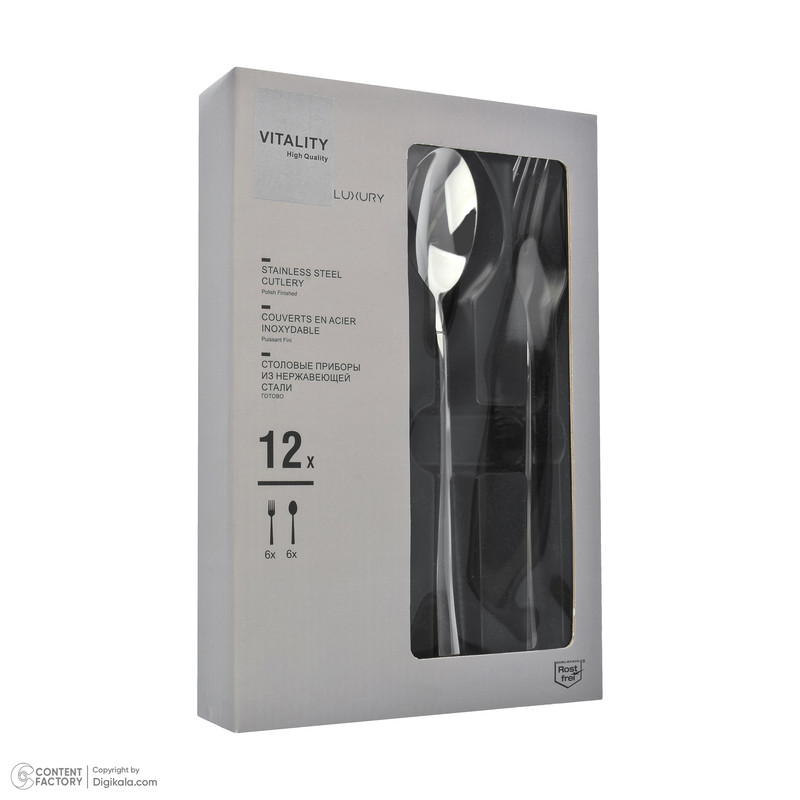 محصولات ویتالیتی با طراحی ساده و مینیمال علاوه بر زیبایی، سادگی در شستشو با دست و ماشین ظرفشویی را نیز برای شما به همراه دارد. قاشق و چنگال غذای خوری شیکاگو یک دست (هرکدام6عدد) با رنگ استیل براق در بسته بندی بسیارشیک برای افرادی که نیاز محدودی دارند عرضه میشود. در تولید این محصول ازتکنولوژی روز آلمان با بهترین مواد اولیه روز دنیا استفاده شده است.