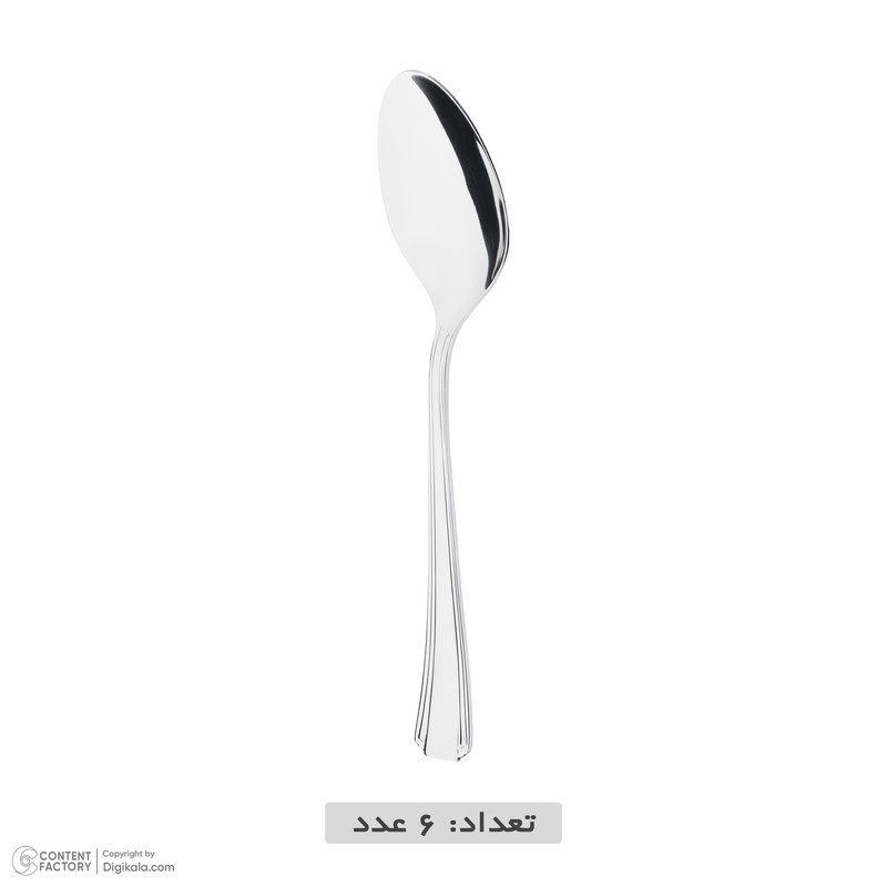 | سایر توضیحات | ۶ عدد قاشق غذاخوری به ابعاد 17x4x0.3 سانتی متر و وزن ۳۵ گرم - ۶ عدد چنگال غذاخوری به ابعاد 17x3x0.3 سانتی متر و وزن ۴۰ گرم - جنس : استیل18/10ضد زنگ با ضخامت3میلیمتر |
