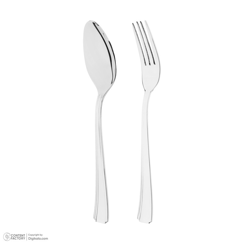 | سایر توضیحات | 6 عدد چنگال به ابعاد 19.5x2.5x0.35 سانتی متر و وزن 50 گرم - 6 عدد قاشق به ابعاد 19.5x4x0.35 سانتی متر و وزن 60 گرم - استیل 18/10 ضدزنگ با ضخامت 3 میلی متر |