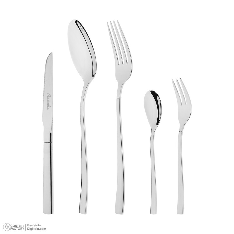 | سایر توضیحات | 6 عدد قاشق غذاخوری به ابعاد 20.5x3x0.25 سانتی متر و وزن 55 گرم - 6 عدد چنگال غذاخوری به ابعد 21x2x0.25 سانتی متر و وزن 40 گرم - 6 عدد چنگال میوه خوری به ابعاد 14.5x2x0.25 سانتی متر و وزن 10 گرم - 6 عدد قاشق مرباخوری به ابعاد 13.5x2x0.25 سانتی متر و وزن 25 گرم - 6 عدد کارد میوه خوری به ابعاد 17.5x1x1 سانتی متر و وزن 60 گرم - استیل18/10ضد زنگ با ضخامت2/5میلیمتر دارای جعبه چوبی از جنس بامبو |