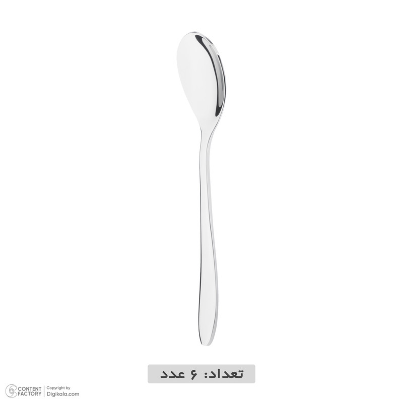 | سایر توضیحات | 6 عدد قاشق غذاخوری به ابعاد 22x4x0.5 و وزن 60 گرم - 6 عدد چنگال غذاخوری به ابعاد 22x2x0.5 و وزن 45 گرم - 6 عدد قاشق چای خوری به ابعاد 14x3x0.5 سانتی متر و وزن 25 گرم - 6 عدد چنگال میوه خوری به ابعاد 14.5x2x0.5 سانتی متر و وزن 20 گرم - 6 عدد کارد میوه خوری به ابعاد 18x2x1 سانتی متر و وزن 35 گرم - 1 عدد کفگیر برنج به ابعاد 29x8.5x0.5 سانتی متر و وزن 115 گرم - 1 عدد ملاقه سوپ به ابعاد 29x8x2 سانتی متر و وزن 130 گرم استیل ۱۸/۱۰ ضدزنگ با ضخامت3/5میلی متر |