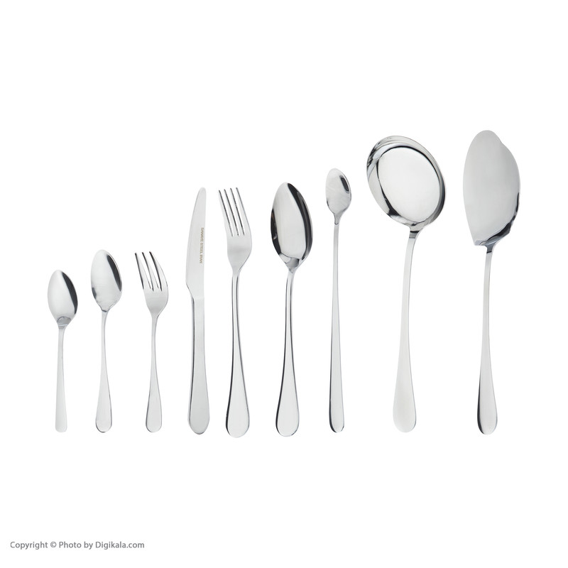 | سایر توضیحات | - 12 عدد قاشق غذاخوری با طول دسته 13.5 سانتی متر - 12 عدد چنگال غذاخوری با طول دسته 13.5 سانتی متر - 6 عدد قاشق چای خوری با طول دسته 7 سانتی متر - 6 عدد قاشق بستنی خوری با طول دسته 17 سانتی متر - 6 عدد قاشق مرباخوری با طول دسته 9.5 سانتی متر - 6 عدد کارد میوه خوری با طول دسته 9 سانتی متر - 1 عدد ملاقه با طول دسته 19 سانتی متر - 2 عدد کفگیر با طول دسته 19 سانتی متر - 6 عدد چنگال میوه خوری با طول دسته 9 سانتی متر |