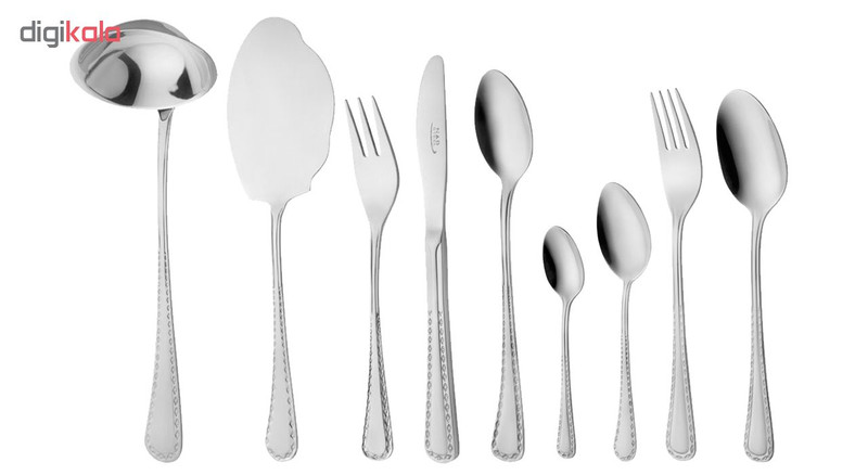 | سایر توضیحات | - مناسب برای 12 نفر - 12 عدد قاشق غذاخوری - 12 عدد چنگال غذاخوری - 6 عدد قاشق چایخوری - 6 عدد قاشق مرباخوری - 6 عدد قاشق شربتخوری - 6 عدد کارد میوهخوری - 6 عدد چنگال میوهخوری - 2 عدد کفگیر - 1 عدد ملاقه |