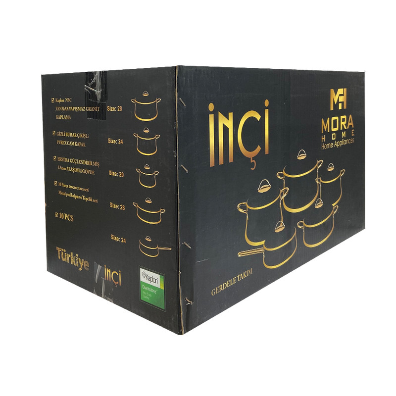 قابلمهها قلب هر آشپزخانهای هستند. وقتی یک سرویس قابلمهی با کیفیت و مناسب داشته باشید میتوانید به راحتی هر غذایی را آماده کنید و نگران کیفیت پخت آن نباشید. این سرویس محصول کشور ایتالیا است و از آلومینیوم روکش شده با نانو گرانیت طبیعی تولید شده است که دارای رنگ کوره ای است و هنگام داغ شدن هیچ مواد سمی ای از خود خارج نمیکند کفهی تمام ظرفها ضخیم است و میتواند گرما را به خوبی حفظ کند. همچنین نوع شیشه ی به کار رفته در ساخت درب قابلمه ها از جنس مرغوب بوده که به هیچ عنوان حرارت داخل قابلمه را خارج نخواهد کرد.