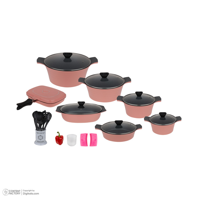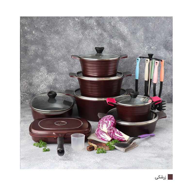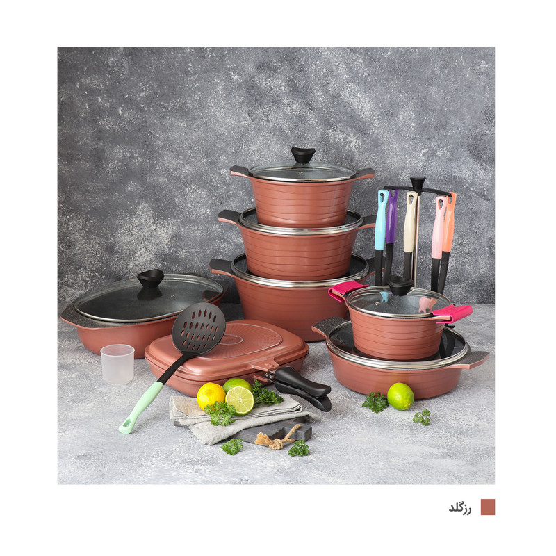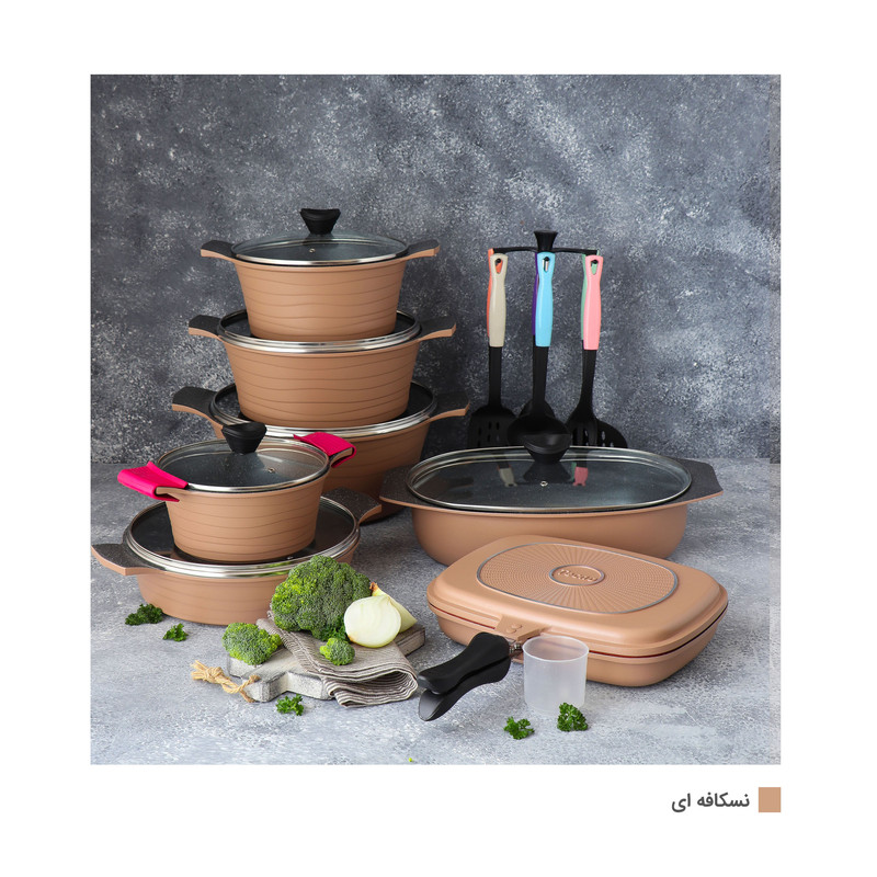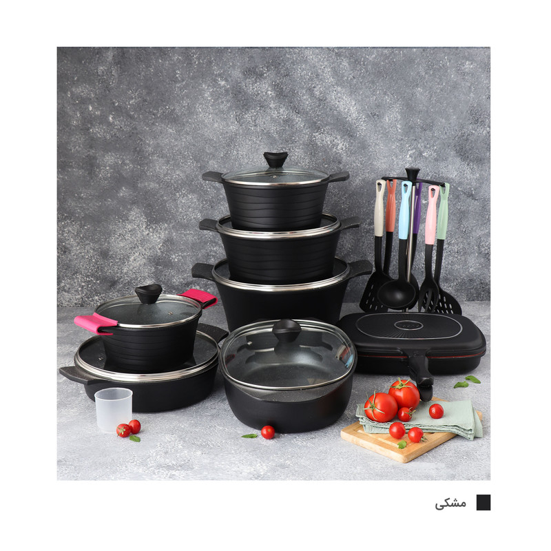سرویس پخت و پز 24 پارچه تکنو مدل ونوس شامل قابلمههای مختلف در اندازه و تابههای متنوع است. این سرویس از جنس دایکاست آلومینیوم (چدن ) و با پوشش گرانیت نچسب تولیدشده و دارای 4 قابلمه در سایز های 20 و 24 و 28 و 32 و یک تابه در سایز 28 و یک تابه رژیمی دو طرفه و همچنین یک رستر سایز 36 ( جهت پخت و طبخ مرغ و ماهی ) به همراه یک ست کفگیر ملاقه و دستگیره سیلیکونی و پیمانه می باشد. جنس بدنه قابلمهها و تابهها چون دراین روش در حالت فشارقالب گیری می شود ساختارمقاومی دارد و باعث میشود گرما به سرعت و بهطور یکنواخت منتقل شود و غذاها بهروش بهتری طبخ شوند. سرویس پخت و پز 24 پارچه تکنو مدل ونوس ، با ویژگی های بیان شده، یک انتخاب عالی برای داشتن یک تجربه آشپزی مطمئن و راحت است. این سرویس دارای جنس کفه دو جداره و در پیرکس با نوار استیل است که باعث تحمل دمای بالا و حفظ حرارت بهتر غذا میشود. همچنین، دارای سیستم با سوپاپ تخلیه بخار است که در فشار بخار غذا، احتیاج به هیچ گونه دخالت اضافی برای تخلیه بخار ندارد. روکش گرانیت قابلیت نچسب بودن روی کفه را دارد و باعث جلوگیری از چسبیدن مواد غذایی به کف ظرف خواهد شد. قپه این سرویس از جنس باکالیت ساخته شده است که باعث ایمنی در دستان شما میشود. این سرویس قابل استفاده در اجاق گاز بوده و همچنین قابل شستوشو با دست را داراست.