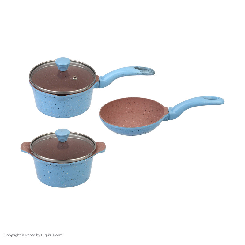| سایر توضیحات | - دارای قابلمه سایز 14 به ابعاد 19×7×15 سانتیمتر و وزن 450 گرم - دارای شیر جوش سایز 14 به ابعاد 28×5×16 سانتیمتر و وزن 570 گرم - دارای تابه سایز 14 به ابعاد 27×3×14 سانتیمتر و وزن 225 گرم - دارای کفی پخش حرارت - دارای اجاق گاز و برقی |