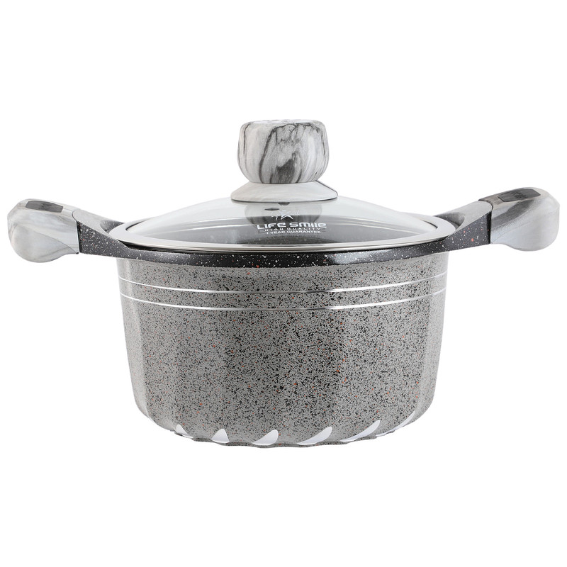 سرویس قابلمه چدنی لایف اسمایل مدل LIFEP2-6-3 دارای سه عدد قابلمه چدنی در اندازه های 32 - 28 - 24 با درب شیشه ای بسیار بادوام و دسته های نسوز (دسته های قابلمه های از جنس باکالیت ) می باشند این سرویس قابلمه کیفیت ساخت بسیار بسیار بالایی دارد . کفه بیرونی قابلمه طوری طراحی شده است که گرما را بسیار سریع جذب خود کرده و در نتیجه قابلمه سریعتر از سایر قابلمه ها داغ خواهد شد و مزیت دیگر آن این است که طراحی فوق العاده کف بیرونی آن باعث می شود قابلمه مدتی تمام داغ بماند و در نتیجه غذای شما بعد از خاموش کردن شعله گاز مدتی داغ بماند . درب شیشه ای شفاف از جنس پیرکس باعث می شود در هنگام پخت غذا براحتی محتویات قابلمه را مشاهده و مراحل پخت غذا را مشاهده کرد. پیرکس در مقابل حرارت بسیار مقاوم است . شستشوی بسیار راحت و تنها با یک ابر از مزایای ظروف سرامیکی است که استفاده از آن را بیش از پیش راحت کرده است.