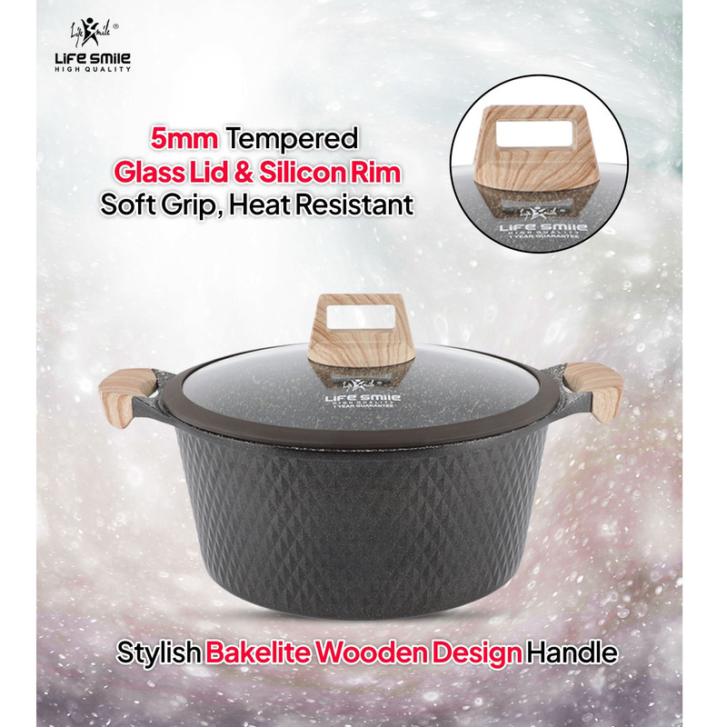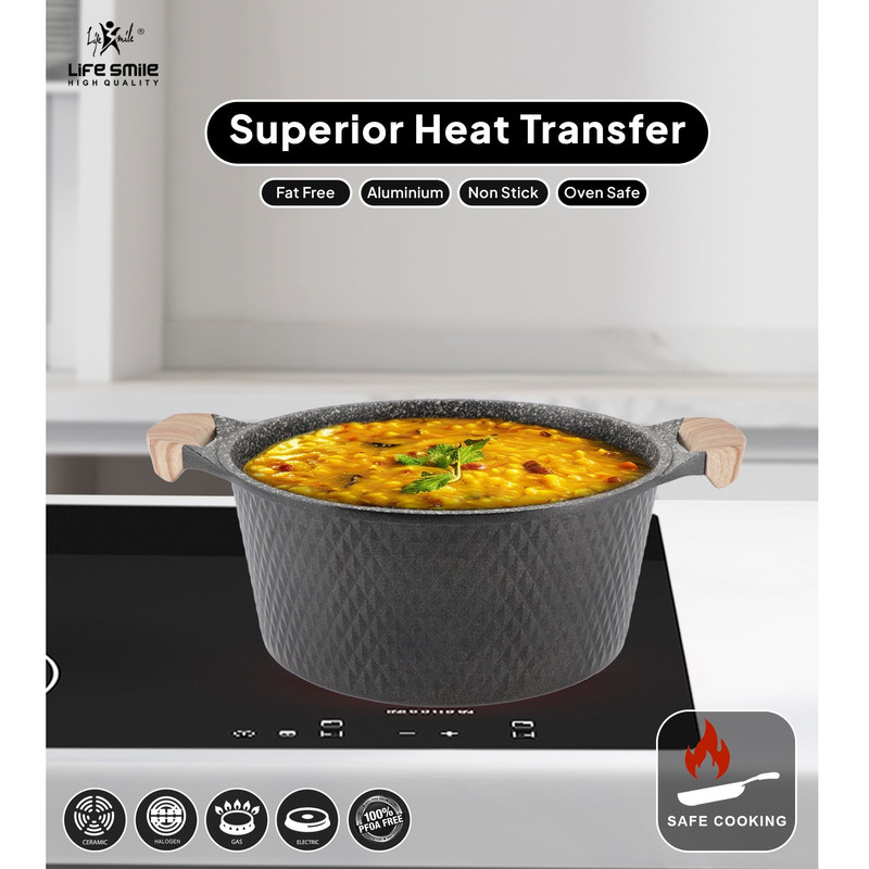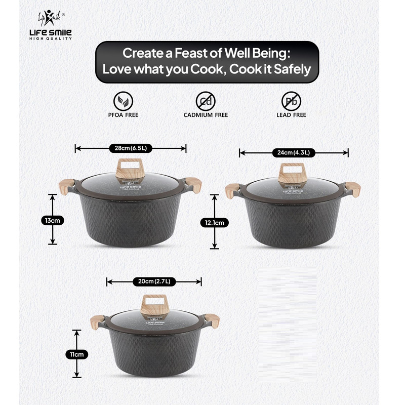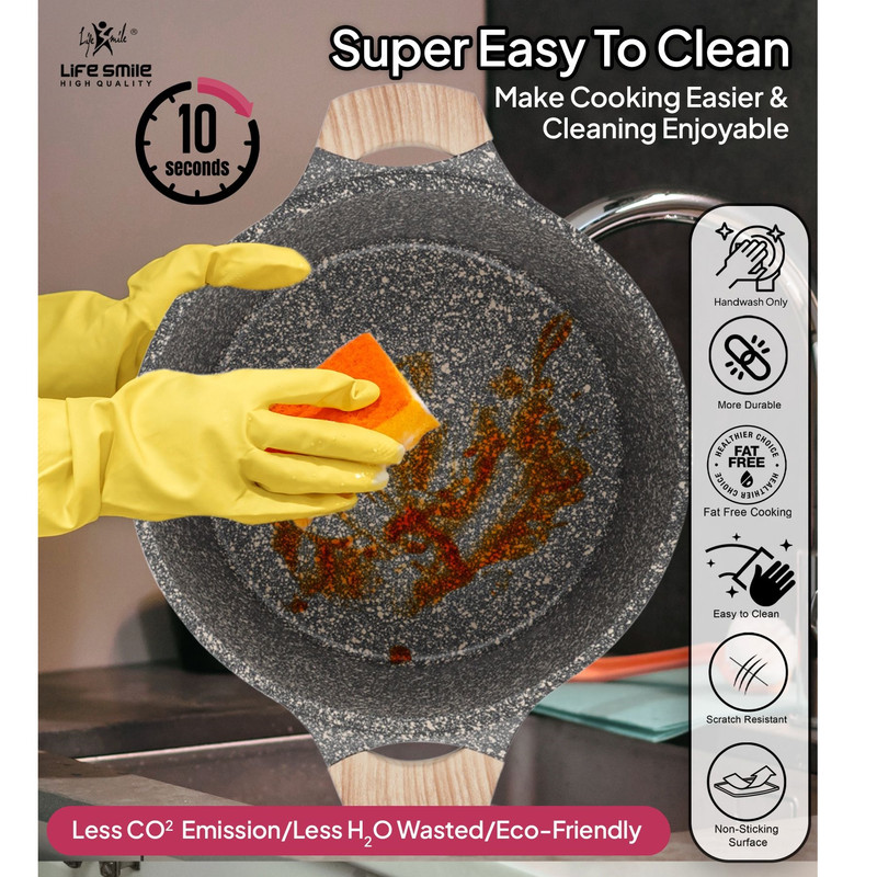 | سایر توضیحات | سطح داخلی قابلمه نچسب بادوام ساخته شده از پوشش نچسب گرانیت 100% بدون PFOA. تمیز کردن آن را آسان می کند و احتمال چسبیدن غذا به سطح را به حداقل می رساند. پوشش آن را بادوام تر می کند و دیگر لازم نیست نگران لکه شدن یا باقی مانده های دائمی باشید. سطح نچسب به شما امکان می دهد با حداقل مقدار کره/روغن/چربی بپزید و غذا را بسیار سالم تر می کند. پخت و پز با تهویه بخار: کاسرول ما با درب شیشه ای با ضخامت 5 میلی متر با طراحی تهویه بخار و با لبه استیل خالص ارائه می شود. کاسرول را به راحتی با دسته دوبل بلند کنید. طراحی تهویه بخار برای امکان دقت و کارایی زمانی که شما به آن نیاز دارید تا متناسب با وظایف آشپزی شما باشد. پایین القایی: برای استفاده در انواع اجاق گاز مناسب است. مناسب برای اجاقها و اجاقهای پخت چندمنظوره: اجاق گاز / گاز / سرامیک / اجاق گاز القایی و اجاق گاز و مایکروویو. در اینجا یکی دیگر از مزایای آلومینیوم وجود دارد: به سرعت و به طور یکنواخت گرم می شود، بنابراین شما با "نقاط داغ" مواجه نمی شوید. تمیز کردن آسان: فقط با دست بشویید. دارای سطح عالی حتی سرسختترین مواد مانند قارچهای ورقهای نازک یا پیاز خلالشده بلافاصله بدون باقی ماندن باقیمانده میلغزند. علاوه بر این، کناره های این ماهیتابه دارای انحناهای پهنی در قسمت پایینی آن است که هم زدن غذا و مخصوصاً تمیز کردن قابلمه را بعد از استفاده آسان می کند. ماهیتابه به آرامی به سمت پایین خم می شود و گرفتن آخرین ذره سس یا هر چیز دیگری (و تمیز کردن) را آسان می کند! گوشه ای برای گیر کردن غذا وجود ندارد . بدنه آلومینیومی مستحکم: توزیع سریع و یکنواخت حرارت را تضمین می کند، کف ضخیم 6 میلی متر توزیع پایدار گرما را در حین پخت فراهم می کند، به سرعت گرم می شود، در زمان و انرژی صرفه جویی می کند، ضخامت بدنه آلومینیومی با وزن مناسب و رسانای گرما می تواند گرمای یکنواخت را تضمین کند. اتلاف و جلوگیری از نقاط داغ. دسته های چوبی با طرح ارگونومیک باکلیت: این مجموعه قابلمه و ماهیتابه دارای دسته نرم با تکنولوژی BAKELITE هستند. یک فناوری منحصر به فرد که دسته قابلمه یا ماهی تابه را همیشه خنک نگه می دارد. بارها و بارها به این ظروف ضروری مراجعه خواهید کرد! با طراحی دستگیره دوگانه این ماهیتابه، آشپزی خود را محکم نگه دارید. گیره بادوام مقاوم در برابر حرارت با یک لمس زیبا برای تکمیل آشپزی شما! قابلیت فر، قابل استفاده در مایکروویو، فقط شستشو با دست، ضد خش است .قبل از استفاده از تابه برای اولین بار در آب گرم و صابون بشویید، کاملا خشک کنید و به آرامی با روغن/کره مزه دار کنید. حرارت کم/متوسط برای به دست آوردن بهترین نتایج پخت کافی است. هرگز تابه را بیش از حد گرم نکنید (حداکثر دمای 200-240 درجه سانتیگراد برای هر محدوده خاص روی بسته بندی مشخص شده است). آلومینیوم ریخته گری رسانای بسیار خوبی برای گرما است و گرمای بیش از حد مداوم می تواند به پوشش آسیب برساند. تابه را وقتی خالی است گرم نکنید. ماهی تابه را باید فقط برای پخت و پز استفاده کرد. از ماهیتابه برای نگهداری (ذخیره کردن) غذا برای مدت طولانی تری استفاده نکنید زیرا برخی از مواد غذایی تهاجمی می توانند به پوشش آسیب برسانند. فقط از ظروف چوبی و نایلونی استفاده کنید و غذا را در تابه برش ندهید. پس از استفاده، ظرف را مدتی بگذارید تا خنک شود، آن را در آب گرم و صابون تمیز کرده و کاملا خشک کنید. برخی از شوینده های تهاجمی می توانند به محصول آسیب برسانند. شستشو با دست پیشنهاد می شود. تغییر رنگ جزئی پوشش داخل تابه هیچ تاثیر منفی بر کیفیت محصول و یا تاثیر آن در حین استفاده ندارد. دسته های باکلیت تابه ها و دستگیره های روی درب آن از دمای 180 تا 240 درجه سانتیگراد ضد فر هستند (با توجه به مشخصات روی بسته بندی محصول) ، قابلمه ها و ماهیتابه هایی که از هیچ قسمت پلاستیکی تشکیل نشده اند برای استفاده در فر نیز مناسب هستند. به دلایل ایمن، برخی از محصولات در هنگام دستکاری محصول داغ مورد نی