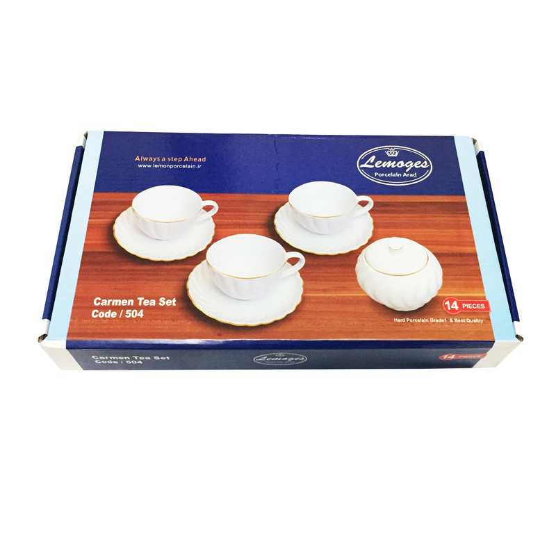 شرکت لمونژ چینی آراد تولید کننده انواع ظروف آشپزخانه چینی در سال 93 با تفکر ایجاد تحول و تاثیر گذاری در کیفیت و تنوع انواع ظروف چینی شروع به فعالیت کرد. این شرکت با دیدگاه توسعه پایدار و شعار (همیشه یک گام جلوتر) در سال 97 موفق به راه اندازی واحدهای توسعه ، تحقیق ، طراحی و قالب سازی گردید که در این راستا موفق به طراحی ، ثبت طرح های صنعتی ، ساخت و تولید انواع ظروف آشپزخانه چینی سخت شده است. محصول سرویس چای خوری 14 پارچه لمونژ مدل کارمن کد 504 از جنس چینی با کیفیت و لبه های طلایی رنگ می باشد.