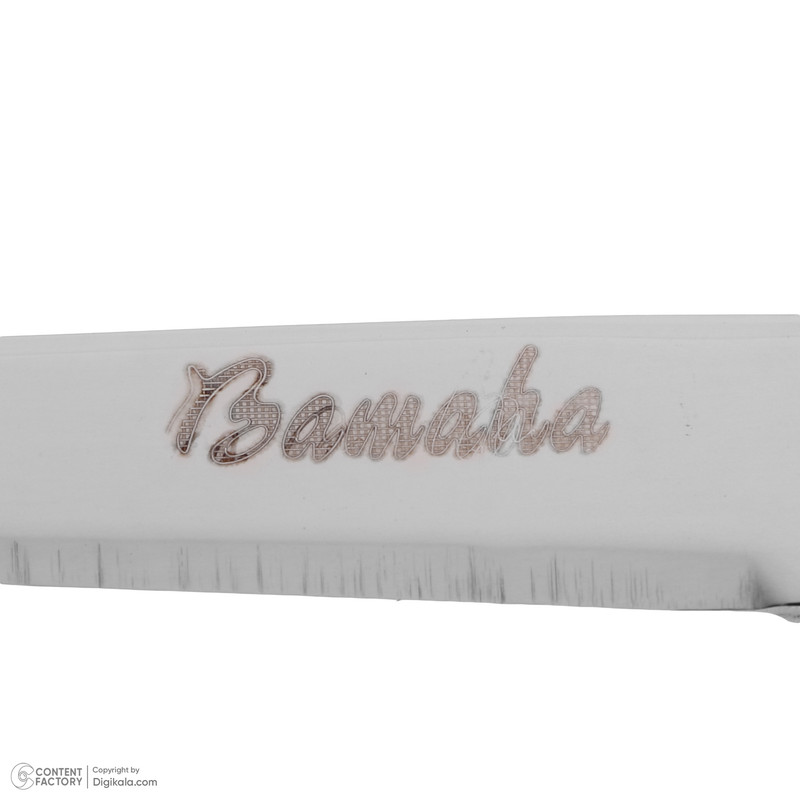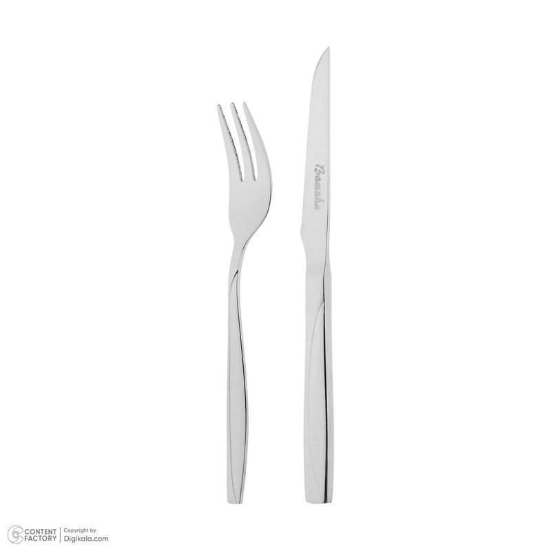 کارد و چنگال میوه خوری " باماها " ابزار بسیارمناسبی برای سرو میوه و کیک و دسر میباشد و کارد آن با تیغه های تیزی که دارد به راحتی برای شما برش ایجاد میکند و میتوانید پذیرایی لذت بخشی برای مهمانان عزیز خود داشته باشید. جنس این محصول از استیل براق 18/10ضد زنگ با ضخامت2/5میلی متر بوده و قابل شستشو با ماشین ظرفشویی است و طراحی خاص آن باعث شده تا بسیار خوش دست و شیک باشد.