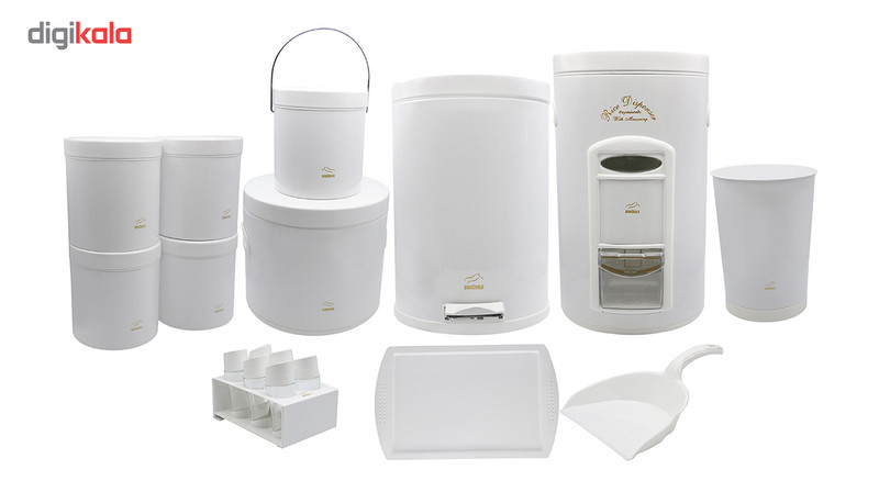 | سایر توضیحات | دارای خاک انداز و سینی و ست ادویه و سطل برنج و سطل زباله پدالدار و سطل روغن و سطل نبات و سطل حبوبات و سطل کوچک |