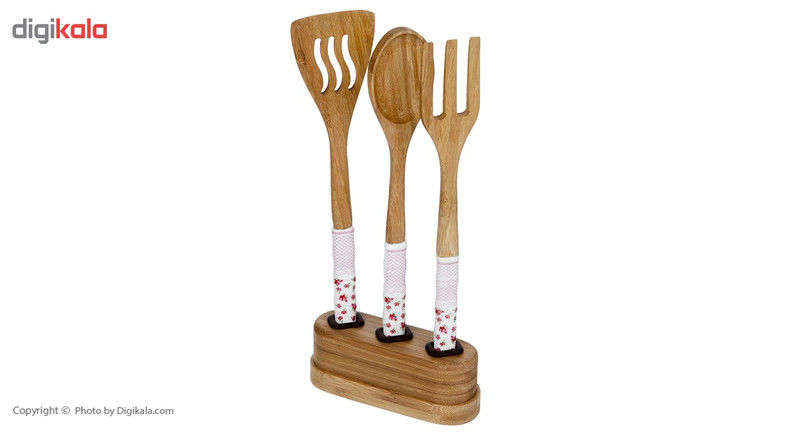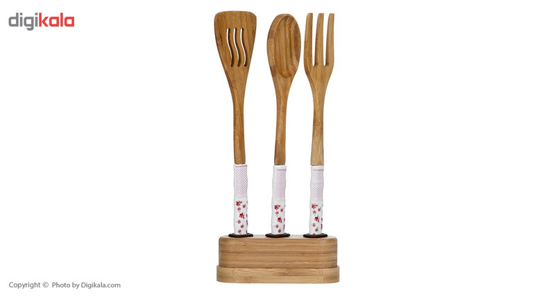 | سایر توضیحات | - سرویس چهار پارچه شامل: - یک عدد کفگیر آشپزی به طول 24.5 سانتیمتر - یک عدد قاشق آشپزی به طول 24.5 سانتیمتر - یک عدد چنگال آشپزی به طول 24.5 سانتیمتر - یک عدد پایه به طول 12.5 سانتی متر - ساخته شده از چوب بامبوم |
