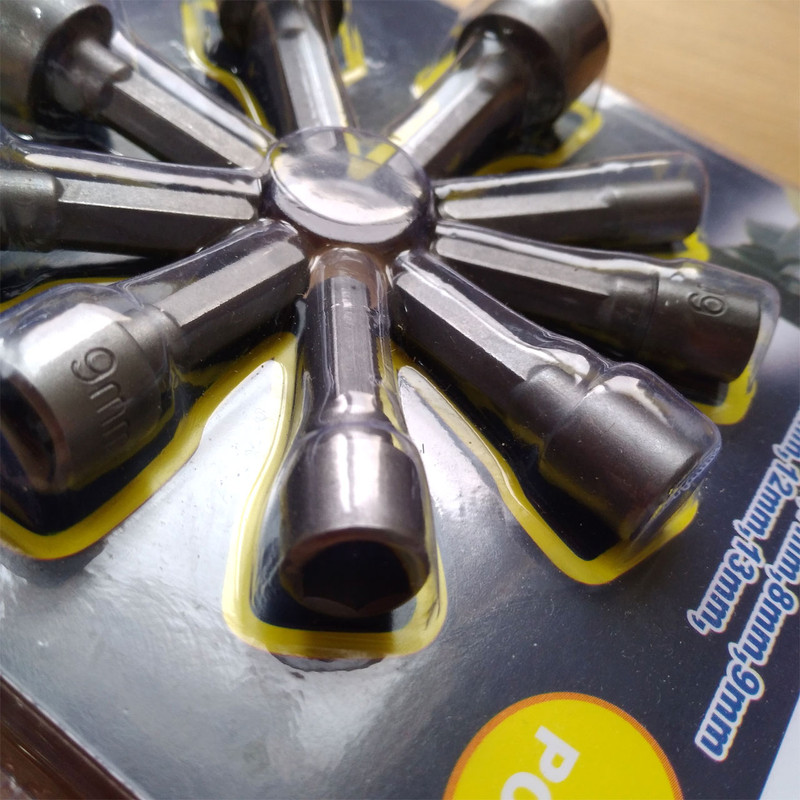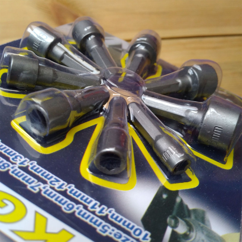 ست 9 عددی بکس شیروانی سر دریلی برند KGT ست بکس سر دریلی ارائه شده شامل 9 عدد بکس در سایزهای مختلف که بر روی دریل بسته می شود و برای باز و بسته کردن پیچ و مهره ها استفاده می شود و با استفاده از نیروی دریل به راحتی پیچ و مهره ها را باز و بست کرد.بکس ها را معمولا با آچار جغجغه ای های دستی بکار می برند ولی با استفاده از بکس سر دریلی می توان دریل را به بکس تبدیل کرد و برای راحتی کار با استفاده از دریل بکس ها را بکار برد.این ست شامل 9 عدد بکس سر دریلی به سایزهای 5، 6، 7، 8، 9، 10، 11، 12 و 13 میلی متر می باشد که برای بسیاری از شغل ها مانند تعمیر کارهای برق ماشین و باطری سازها برای تعمیر استارت و دینام بسیار مناسب است و با استفاده از یک دریل برقی یا شارژی و نیروی برق می توان پیچ ها را سفت و باز کرد.در حالت کلی برای تبدیل دریل به بکس تا حدودی می توان از این بکس سر دریلی های شیروانی برند سان شانگ ساخت کشور چین به راحتی استفاده کرد و با نصب آن بر روی دریل از طرفی که بدین منظور قرار داده شده و مختص این کار است از دریل به عنوان یک بکس برقی استفاده نمود.