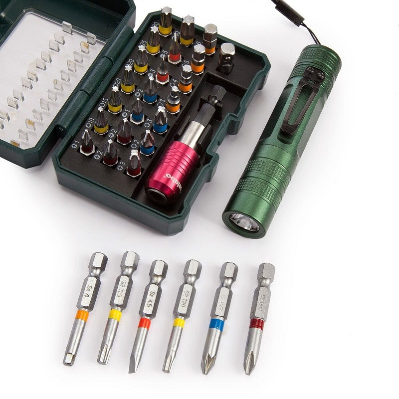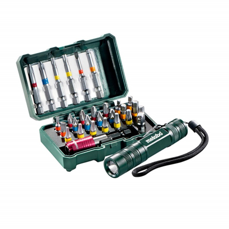 | توضیحات تعداد | متشکل از: S 2 بیت L = 25 میلی متر (21 عدد): PH 1 x 1، PH 2 x 2، PH 3 x 1، PZ 1 x 1، PZ 2 x 2، PZ 3 x 1، SL 3 x 1، SL 5 x 1، H 3 x 1، H 4 x 1، H 5 x 1، H 6 x 1، T 10 x 1، T 15 x 1، T 20 x 2، T 25 x 1، T 30 x 1، T 40 x 1 L = 50 میلی متر (6 عدد): PH 2 x 1، PZ 2 x 1، T 20 x 1، T 25 x 1، SL 4.5 x 1، H 4 x 1 1 عدد آداپتور، 1 عدد نگهدارنده بیت با تغییر سریع مغناطیسی شامل نور فلاش کوچک: CREE-LED، 100 لومن، برد نوری 100 متر، مدت زمان روشنایی 180 دقیقه بیت های ساخته شده از فولاد کروم وانادیوم (کیفیت S2)؛ بیت با کدگذاری رنگ: برای یافتن سریع و آسان بیت مناسب. آداپتور تغییر سریع مغناطیسی؛ جعبه باکیفیت و مستحکم در طراحی خاص Metabo با پانچ یورو سوراخ قابل افزایش |