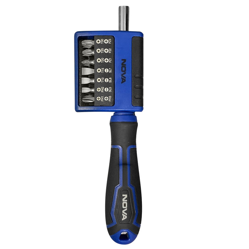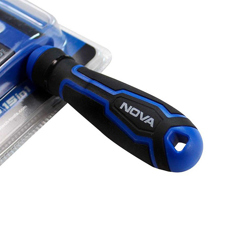 مجموعه 15 عددی سری پیچ گوشتی نووا مدل 1342 یکی از محصولات با کیفیت این برند است. دسته پیچ گوشتی با طراحی ارگونومیک از جنس ( PP - PVC - TPV ) ضد لغزش ساخته شده و میله آن از با کیفیت ترین متریال روی تولید شده است. کلیه سری های پیچ گوشتی از جنس کروم واندیوم می باشد و نوک آنها به صورت یک تکه پرداخت و ماشین کاری شده است. سری ها کاملا داخل دسته چفت می شوند و از مقاومت بالایی برخوردارند. این مجموعه دارای 3 عدد سری دوسو در سایز های ( 5 ، 6 ، 7 ) میلی متر - 3 عدد سری چهارسو در سایزهای ( PH1 ، PH2 ، PH3 ) - 3 عدد سری چهارسو خاردار در سایزهای ( PZ1 , PZ2 , PZ3 ) 5 عدد سری چهارسو در سایزهای ( T10 , T15 , T20 , T25 , T30 ) و یک عدد دسته به طول 22 سانتی متر است.