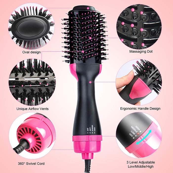 سشوار برس دار حالت دهنده مدل One step توان مصرفی : 1000 وات طول سیم : 1.5 سانتیمتر قابلیتها : فناوری تولید یون نوع موتور : DC کاربرد به صورت : خانگی / نیمه حرفهای جنس المنت : سرامیک تورمالین