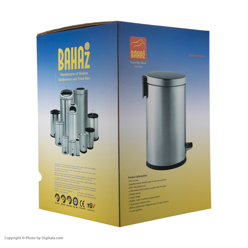 سطل زباله پدالی بی صدا 14 لیتری محصول جدید شرکت بهازکالا است که مجهز به سیستم آرام بند و بسته شدن درب سطل بدون تولید صدا بوده و با طراحی نوین از لحاظ عملکرد و شکل ظاهری، به مصرف کنندگان محترم ارائه گردیده است. این سطل پدالدار برای استفاده در محیط های مختلفی چون آشپزخانه ، سرویس بهداشتی ، فضاهای اداری و سایر مکان های عمومی مناسب می باشد. عدم تولید صدای اضافی به هنگام کارکرد ، طراحی زیبا، حجم کم و برخورداری از ظرفیت مناسب، از ویژگی های متمایز این محصول به شمار می رود.