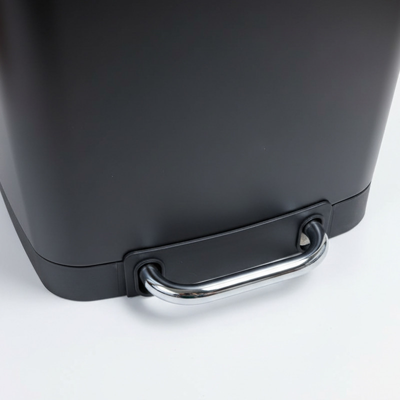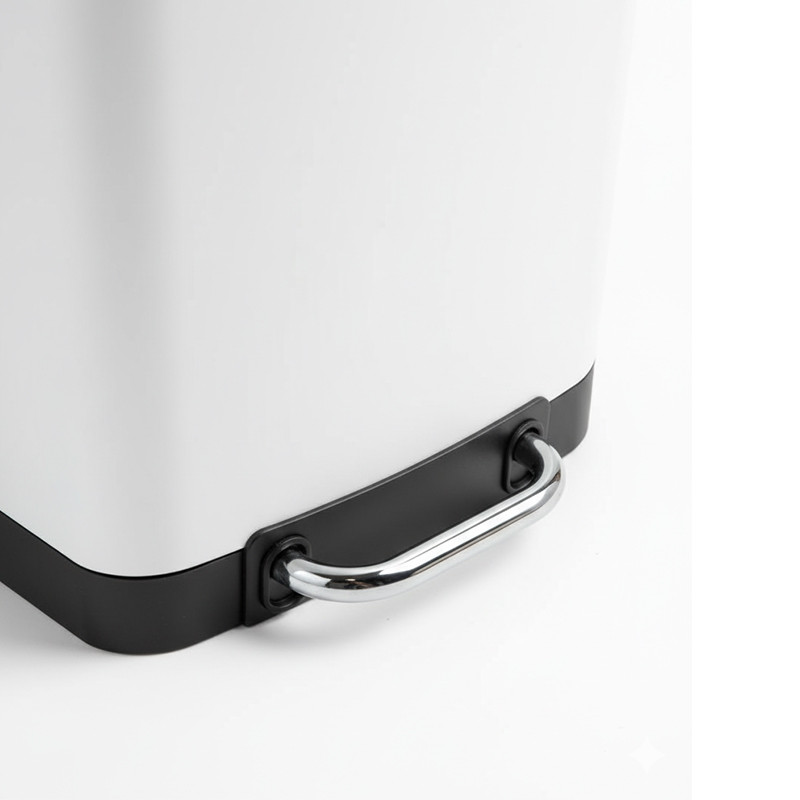 در قسمت پایین سطل، پدال فلزی مقاوم تعبیه شده که امکان باز و بسته کردن درب را بدون نیاز به تماس دست فراهم می‌کند و بهداشت بیشتری را به همراه دارد. همچنین دارای سطل داخلی پلاستیکی قابل جدا شدن است تا تخلیه و شست‌وشو به‌سادگی انجام شود.