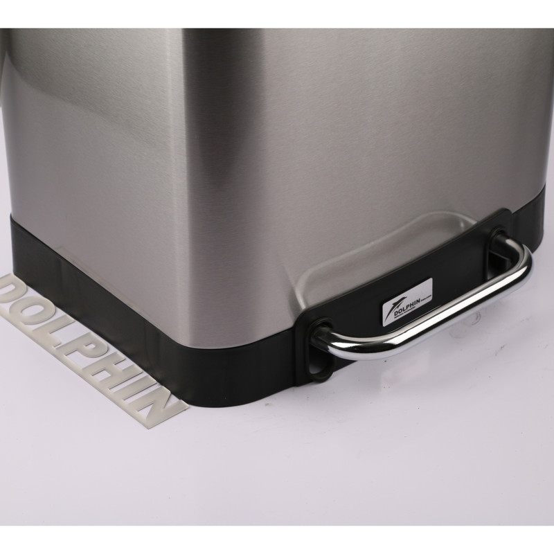 سطل دلفین مدل Pr . این محصول ساخته شده از استیل ضد زنگ بوده که مناسب برای فضاهای رطوبتی میباشد. پدال و لوازم مرتبط با باز و بسته شدن درب بسیار محکم هستند که طول عمر بالایی داشته باشند. همچنین سطل داخلی قابل بیرون آوردن است تا تخلیه و شستشوی سطال است.