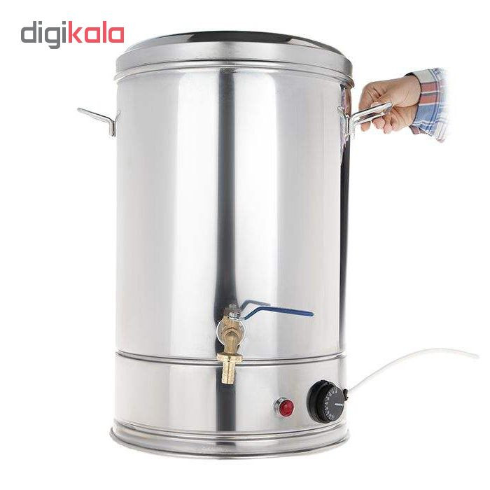 اگر قصد تهیه سماور برقی با گنجایش بالا دارید، یکی از گزینههایتان تهیه سماور برقی صنعتی است. این سماور دارای گنجایش 15لیتری بوده و برای مراسمها بزرگ مذهبی، همایش ها و گردهمایی ها کارایی بالایی دارد. جنسی که برای این مدل در نظر گرفته شده استیل است. استفاده از این جنس باعث شده تا ماندگاری و طول عمر سماورتان افزایش یابد. بر روی این سماور دو دستگیره قرار دارد. با استفاده از این دستگیره جابهجایی سماور آسانتر میشود. یکی از ویژگیهای سماور برقی صنعتی سیم 150 سانتیمتری است. بر روی این سماور دکمه چرخشی جهت تنظیم دما قرار گرفته است. شما قادرید دمای سماور را از 30 تا 110 درجه تنظیم کنید و با رسیدن دمای مایع به درجه مورد نظر، دستگاه به طور اتوماتیک خاموش می شود و از آسیب رسیدن به سماور جلوگیری می کند. همچنین برای افزایش طول عمر سماور همواره از وجود آب داخل مخزن اطمینان حاصل کنید.