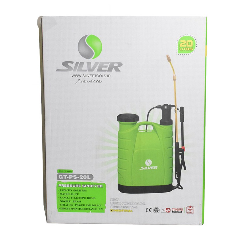 سم پاش 20 لیتری کولی ( دوشی ) سیلور دارای بدنه ای ساخته شده از پلی اتیلن با ابعادی برابر با 60x17x43 سانتی متر، که دارای وزن 3.328 کیلوگرمی می باشد. طراحی بروز و مدرن در سیلندر و نیز کلید تخلیه هوا به همراه فشار کاری 0.2 – 0.4 مگاپیکسلی، این سم پاش را مناسب برای مصارف علف کش، سم حشرات، کود بر پایه آب و همچنین مواد ضد عفونی کننده مانند وایتکس نیز نموده است. این محصول دارای نازل برنجی مقاوم در مقابل رطوبت و زنگ زدگی و قابل تنظیم پاشش بر حسب نیاز مصرف کننده می باشد.