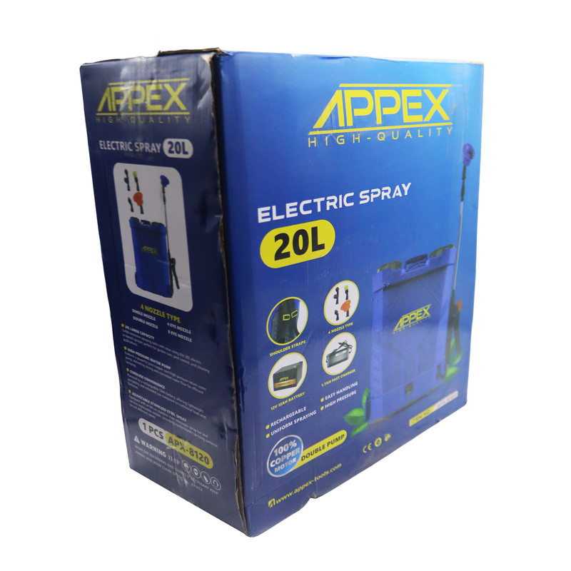 | سایر توضیحات | - سمپاش 20 لیتری اپکس - مجهز به دو پمپ قدرتمند ۱۲ولتی بابازدهی بالا میباشد - دارای قابلیت ۳حالته اسپری مه پاش عمودی و افشان میباشد. - دارای مخزن۲۰لیتری ساخته شده از پلاستیک مقاوم و مستحکم است و دربرابر اشعه ماورالبنفش مقاوم میباشد. - کیفیت بالا |