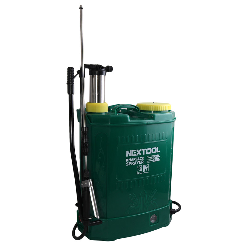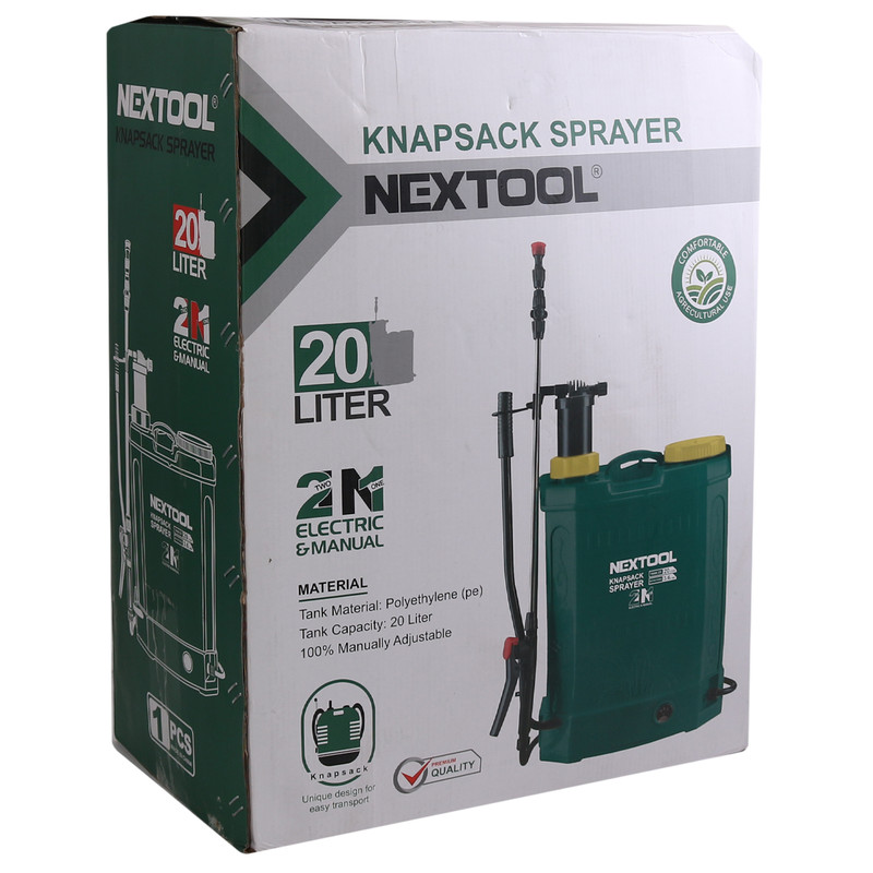 دردنیای امروزی برای ساده ترکردن کارها و فعالیت‌ها، ابزارووسایلی درهرشاخه‌ از تکنولوژی و مهارت ارائه می‌شود. سمپاش شارژی Nextool یکی ازهمین ابزارهای فنی است که می‌تواند در کارهای باغبانی و بهداشتی از آن استفاده مفید کرد. سمپاش وسیله‌ای جهت پاشش سموم به صورت یکنواخت است. سمپاش‌ها در سایزهای مختلف دسته بندی می‌شوند. سمپاش شارژی نکستول مدل NT-20L حجم 20 لیتر با کمک نیروی شارژ باتری و نیز نیروی انسانی سموم را به طور گسترده و یکنواخت می‌پاشد. دوکاره بودن این سم‌پاش از مهترین مزیت‌های این دستگاه بوده که هم قابلیت استفاده دستی و هم شارژی را دارا است. در این سپاش از باتری با کیفیت 12ولت (8 آمپرساعت) پاناسونیک استفاده شده تا عمر باتری این دستگاه به حداکثر برسد. همچنین این سمپاش مجهز به گیج نشان دهنده میزان شارژ باتری نیز است. سمپاش شارژی Nextool، دارای لنس فلزی با نازل‌های (سری‌های) پرکاربرد بوده و دارای جثه بزرگ جهت از بین بردن آفات، حشرات و غیره استفاده می‌شود. همچنین ازاین سم‌پاش جهت گندزدایی و میکروب‌کشی در محیط‌هایی از قبیل محوطه‌های بسته و باز مانند انباری و غیره می‌توان استفاده نمود. در منزل و یا در گلخانه‌ها و یا باغچه‌ها و باغ‌ها عمدتا از این نوع سمپاش استفاده می‌شود. وجود بند کولی باعث حمل و استفاده راحت و سیار از این سم‌پاش شده است. حجم مخزن این سم پاش شارژی 20 لیتراست و دارای بند رودوشی جهت آویزان کردن بر روی دوش است تا هنگام سمپاشی کاربر بدون خستگی و با سرعت سمپاشی ومراقبت و نگهداری از گیاهان را انجام دهد. با استفاده از این سمپاش در وقت و انرژی کاربر صرفه‌جویی چشمگیری می‌شود. جهت کاهش شکستگی مخزن، ضخامت مخزن این سم‌پاش تا حد قابل ممکن افزایش داده شده است. جنس بدنه سمپاش شارژی Nextool پلی اتیلن و مقاوم دربرابرضربه و فشار بوده و به همراه پایه تحتانی مخزن که جهت حفظ تعادل بهتر و افزایش ضربه‌پذیری آن می‌شود مطابق با استاندارد ملی ایران می‌باشد و دارای استاندارد بین المللی CE جهت افزایش اطمینان کاربر از این کالا است تا خریدار با خیال آسوده این کالا را انتخاب و استفاده نماید.