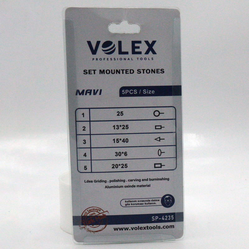 سایر توضیحات - سنگ انگشتی ولکس ممجموعه 5 عددی - دارای 5 عدد فرز انگشتی در سایز های : - کروی سایز 25 میلی متر - استوانه سایز 13x25 میلی متر - مخروطی سایز 15x40 میلی متر - کروی تخت سایز 30x6 میلی متر - استوانه سایز 20x25 میلی متر - کیفیت بالا