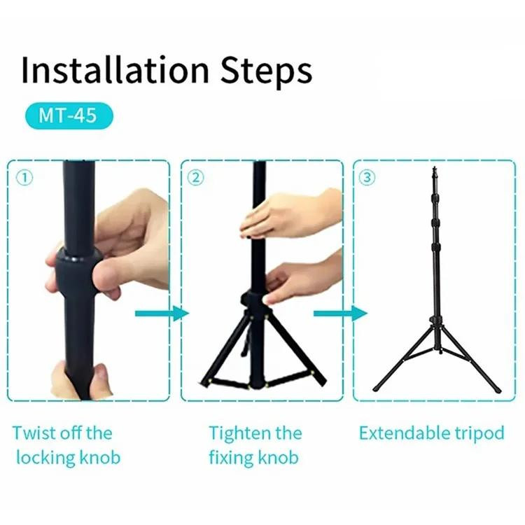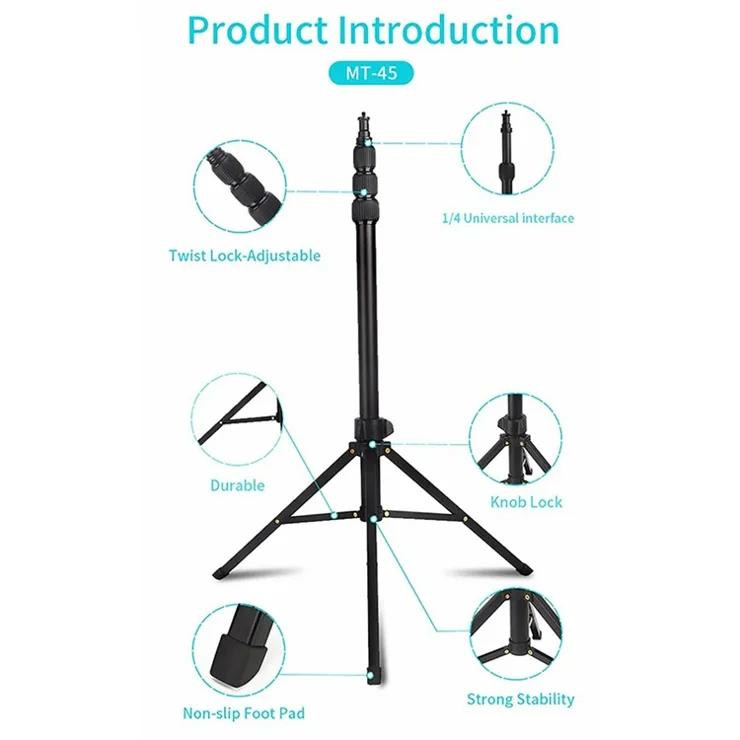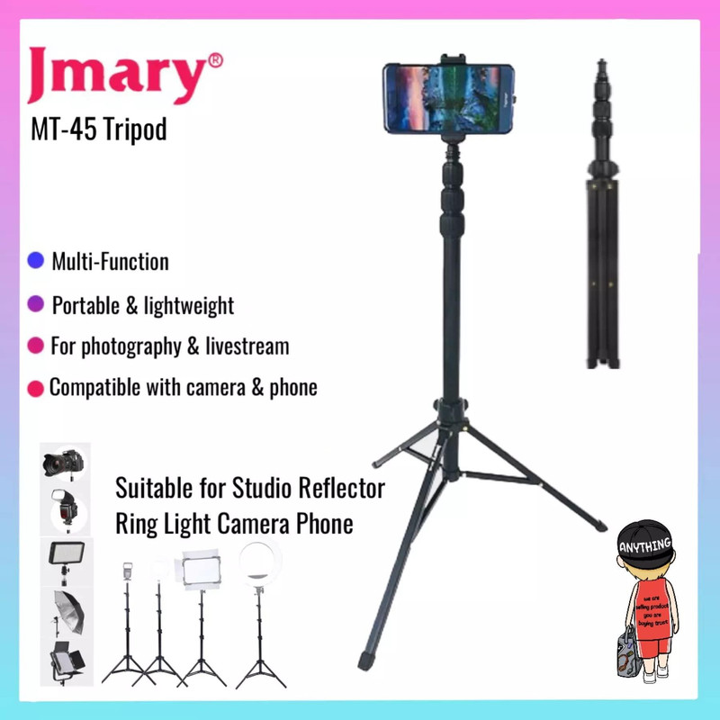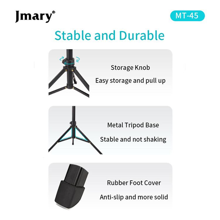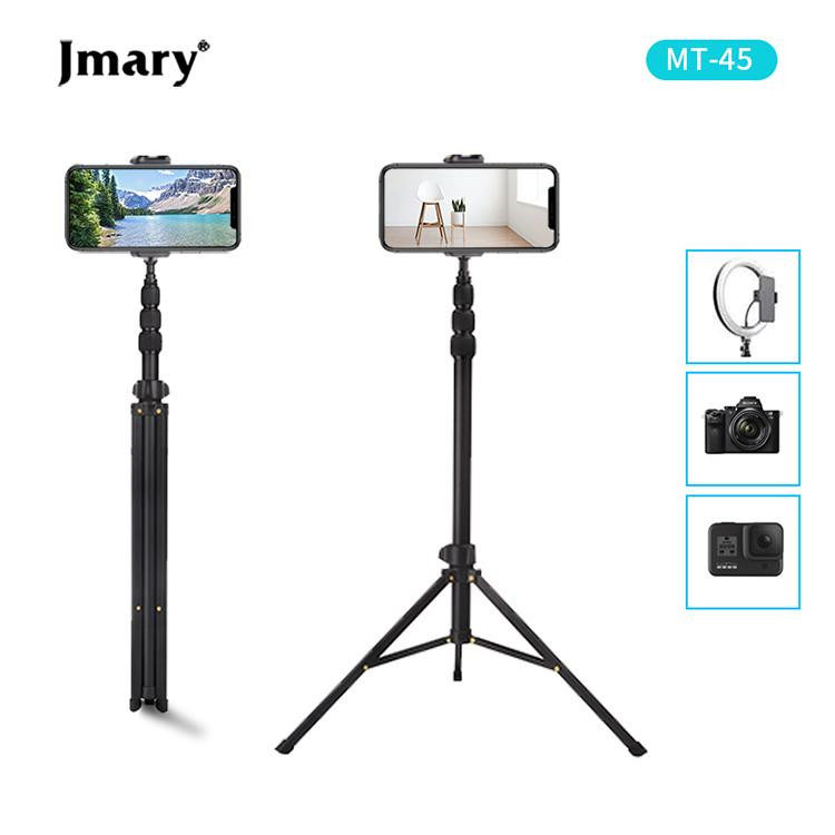 سهپایهی جی ماری مدل MT45 وسیلهای جانبی مناسب، برای عکاسان تازهکار و باتجربه محسوب میشود. بهجرئت میتوان گفت استفاده از سهپایه یکی از ضروریترین کارهای یک عکاس است. این مدل برای عکاسی با انواع دوربینهای مختلف،گوشی،پروژکتور،میکروفن بسیار مناسب است. محور میانی سهپایه مخصوص عکاسی دارای گیره جهت نگهداری دستگاه های قابل استفاده شماست که به شرطی که توان پیچ شدن به پایه را داشته باشند در غیر این صورت شرکت جی ماری یک نگهدارنده گوشی موبایل به این سه پایه اضافه کرده است که در دو حالت افقی و عمودی قابل استفاده است ..سری این سه پایه قابلیت چرخش 180 درجه دارد به طوری که شما می توانید در صورت نیاز در محور زاویه 180 درجه حالت صفحه نمایش را تغییر دهید. گردنی سه پایه جی ماری قابلیت تغییر ارتفاع دارد. پایه جی ماری در حالت معمولی 61 سانتی متر و در حالت باز تا 168سانتی متر می باشد.