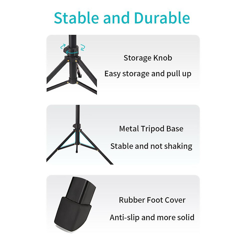 | سایر مشخصات | تغییر زاویه در محور 180 درجه تغییر ارتفاع تا 168 سانتی متر دارای هولدر تا سایز 6.5 اینچ بدنه فلزی مقاوم و محکم قابلیت تنظیم ارتفاع مناسب برای دوربین دیجیتال، گوشی هوشمند، آی پد، دوربین اکشن، پروژکتور، میکروفون |