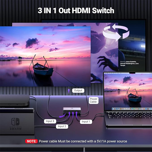 سوئیچ 1 به 3 HDMI یوگرین مدل CM624-15604 8K، برای اشتراک گذاری چند سیستم پخش کنندهی تصویر به یک نمایشگر استفاده میشود. این وسیله اتصال کننده دستگاههای پخش کننده به نمایشگر بصورت جداگانه است. بوسیله ریموت کنترل محصول و یا دکمهی تعبیه شده روی دستگاه میتوان به صورت جداگانه پورت HDMI دستگاه را سوئیچ کرد. دارای نصب آسان میباشد و بهترین گزینه برای کنفرانسها، کنسول های بازی و دستگاه هایی ذخیره تصاویر می باشد. با استفاده از سوئیچ 1 به 3 HDMI یوگرین مدل CM624-15604 8K، میتوان 3 خروجی تصویر مختلف را در یک نمایشگر به نمایش درآورد. این سوئیچ پشتیبانی از کیفیت تصویری 8K@60Hz را دارد. سازگار با سیستم عاملهای ویندوز، مک و لینوکس میباشد.