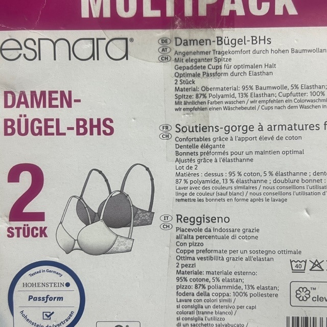 | نگهداری | با لباس های همرنگ شسته شود از مایع شوینده ی مخصوص لباس های رنگی برای شستشو استفاه شود. بهتر است در توری لباس قرار داده شود. در دمای 40 درجه شسته شود. در حالت مرطوب کاپ ها را شکل دهید. کیفیت تست شده در انستیتوی هوهن اشتاین(hohenstein) تست شده از نظر: عدم مواد مضر، کاربردی بودن، ، راحتی و مناسب بودن |