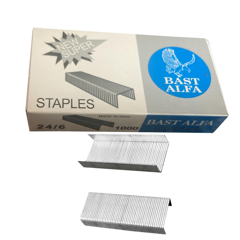 | سایر توضیحات | این سوزن منگنه سری جدید سوزن منگنه بست آلفا میباشد ورنگ سوزن منگنه تغییر کرده وبجای رنگ مسی رنگ استیل دارد و جعبه آن هم ماندد قبل نیست وبصورت کشویی باز میشود تعداد:2 بسته 1000 عددی سوزن منگنه کاربردی کد 24/6 عرض: 12 میلی متر ارتفاع پایه: 5 الی 6میلی متر |