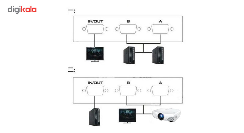 | سایر توضیحات | نوع دیتا سوئیچ : دستی قابلیت برقراری ارتباط 2 دستگاه دارای پورت VGA تعویض کانال دستگاه های متصل شده توسط کلید تعبیه شده دارای دو کلید مجزا برای تعویض کانال های ورودی سازگار با نسخه هاي مختلف ويندوز بدون نیاز به آداپتور کاربرد : مخصوص اتصال دی وی آر، کامپیوتر یا لپ تاپ، مانیتور، ویدئو پروجکتور امکان اتصال یک مانیتور و دوکیس یا یک کیس و دوخروجی مانند مانیتور یا ویدئو پروجکتور |
