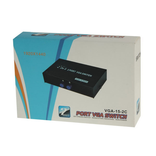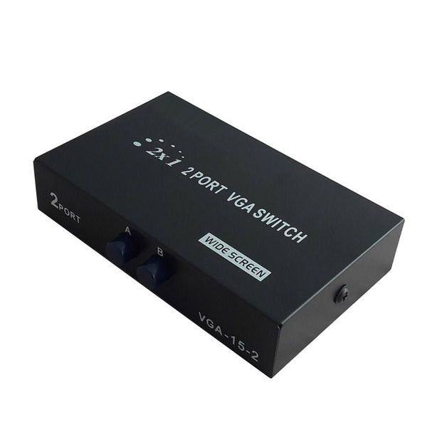 سویچ دو پورت VGA مدل 15-2C یک سوئیچ 2 پورت با 3 درگاه VGA می باشد که در زمانی که یک مانیتور و دو دستگاه پخش کننده تصویر وجود داشته باشد، مورد استفاده قرار می گیرد. بعنوان مثال زمانی که 2 دستگاه ذخیره دوربین مداربسته (DVR-NVR) و یک مانیتور موجود باشد. یا دو کیس و یک مانیتور و یک مانیتور یا ویدئو پروجکتور استفاده می شود. در مجموع می توان با این دستگاه بین خروجی های مختلف پورت VGA می توان با فشردن دکمه سوییچ کرد.