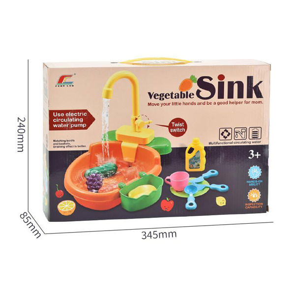 سینک اسباب بازی ظرفشویی سبزیجات یک بازی مهیج و دوست داشتنی برای کودک دلبندتان خواهد بود! او با بازی با ظرف ها و میوه ها و شستن آنها فنون و مهارت های زندگی را یاد می گیرد. ضمن آنکه می تواند با آن ساعت ها سرگرم شود چرا که مثل یک سینک ظرفشویی واقعی ست و کودک دوست دارد تجربه کند، تقلید کند و سرگرم شود.