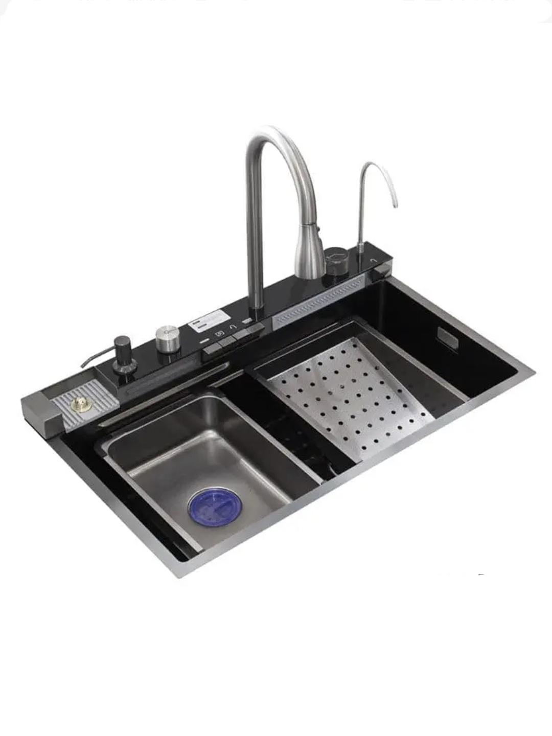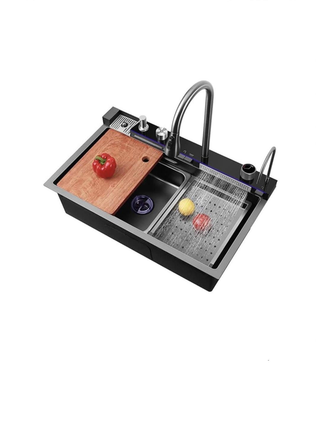 سینک هوشمند ۵ کلید هوادیائو سینک آبشاری هوادیائو، از جدید ترین و مدرن ترین سبک های طراحی سینک های آشپزخانه است که با طراحی به روز و امکانات متنوعی که دارد تجربه لذت بخش یک محصول مدرن و به روز را برای شما به ارمغان می آورد! این سینک با استفاده از بهترین متریال ها و تکنولوژی های روز دنیا ساخته شده است و برای راحتی در استفاده از قابلیت های جدیدی بهره مند است که در کمتر محصول مشابی میتوانید نمونه آن را پیدا کنید. از قابلیت هایی چون دکمه های پیانویی گرفته تا تنظیم دیجیتالی دمای آب و سیفون و لیوان شور اتوماتیک تا قابلیت هایی همچون شیر شاوری و شیر آبشاری، این سینک را به سینکی همه فن حریف تبدیل کرده که نیاز های هر آشپزخانه ای را حتی فراتر چیزی که فکر می کنید برطرف می کند. ویژگی های سینک آبشاری هوادیا بدنه استیل 304 لانه زنبوری ضد خش دارای شیر آبشاری دکمه پیانویی نمایشگر و تنظیم دیجیتالی دمای آب لیوان شور اتوماتیک سیفون اتوماتیک شیر شاوری شلنگ دار دکمه ای دو حالته سبد میوه شور و سبد آبچکان تخت کار چوبی شیر تصفیه اتوماتیک ابعاد: 75 در 46 سانتی متر رنگ:دودی
