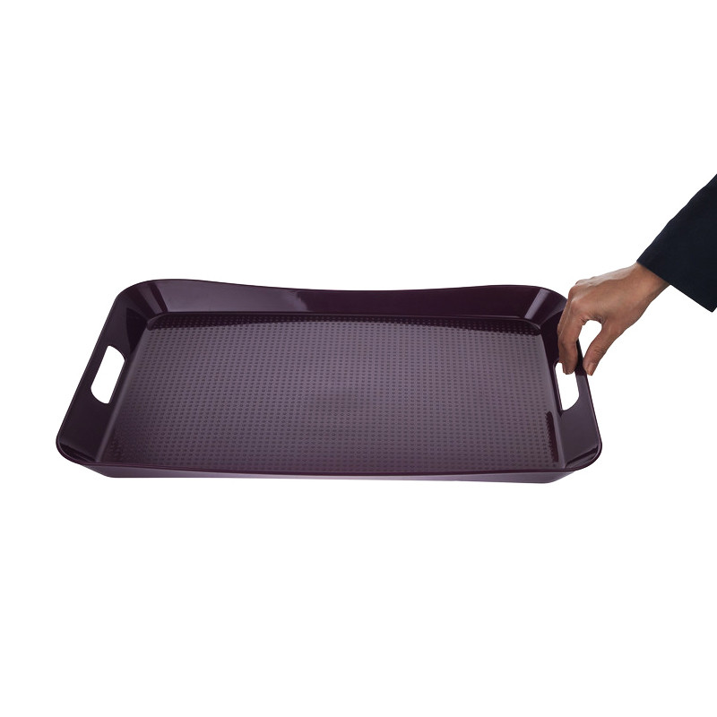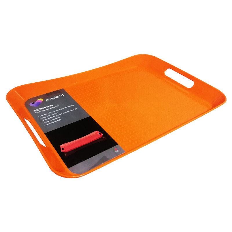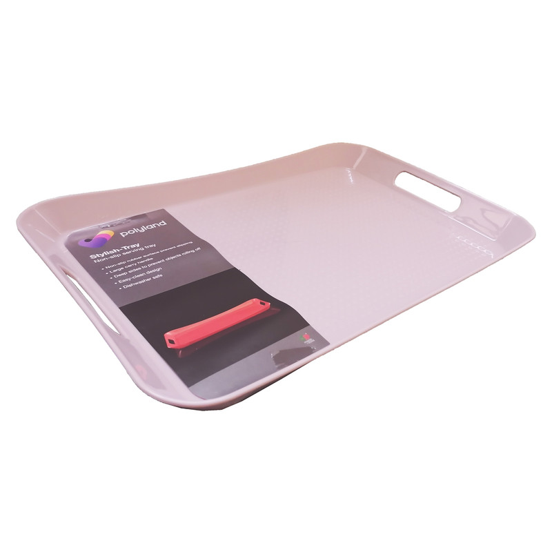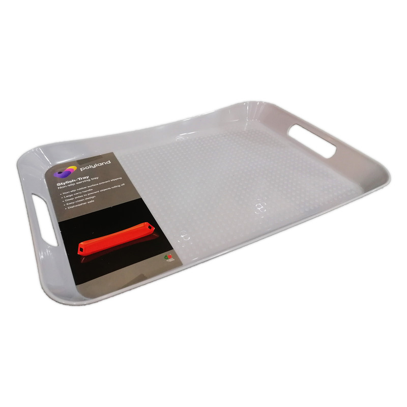 سینی برند پلی لند از جنس مرغوب، ظرافت بالا و زیبایی منحصر به فردی برخوردار است. ابعاد قسمت داخلی سینی : 43x29x3 سانتیمتر، ارتفاع لبه در بلندترین قسمت 4 سانتیمتر ارتفاع لبه در کوتاهترین قسمت 3 سانتیمتر است. طراحی بدنه های کناری به شکل دسته برای راحتی حمل، طراحی کف سینی بصورت نقطه ای برای جلوگیری از لغزندگی می باشد. جهت خرید حتما به سایز محصول دقت کنید. این سینی در سه سایز تولید شده است که این کالا (با کد PL02) سایز متوسط می باشد.
