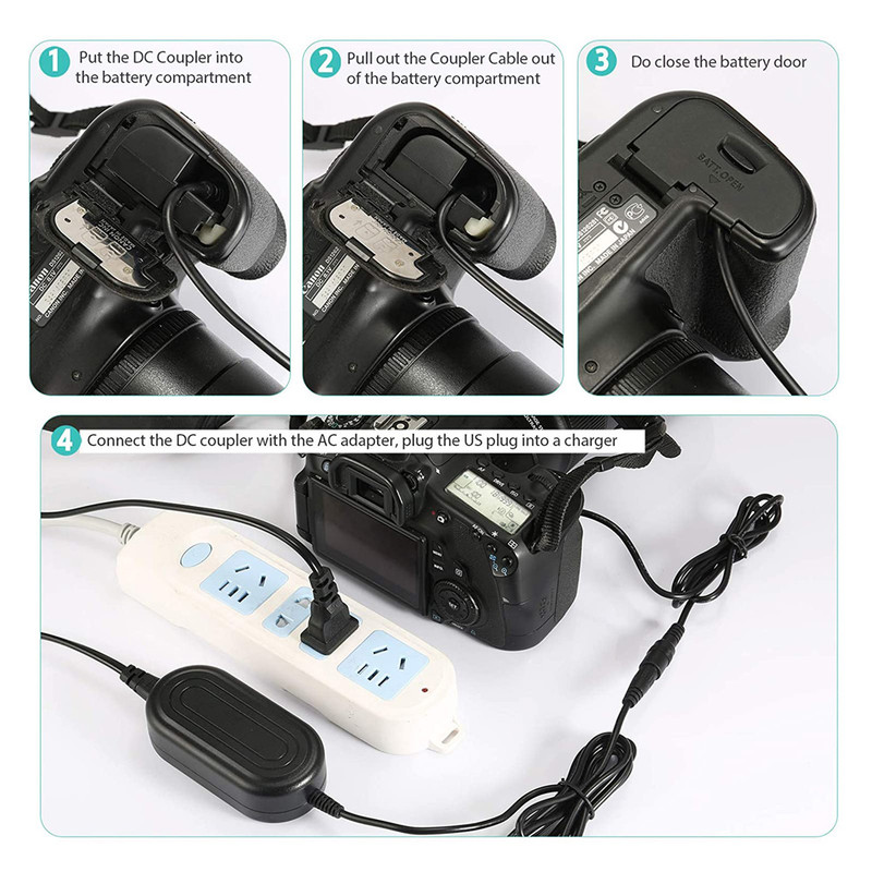به این نکته دقت کنید ، درب باتری دوربین حتما باید به صورت کامل بسته شود تا بتوانید از این آداپتور شارژ استفاده کنید در غیر این صورت آداپتور کار نمی کند. از این آداپتور نمی توانید بر روی دوربین های کانن 2000D و 4000D استفاده کنید.