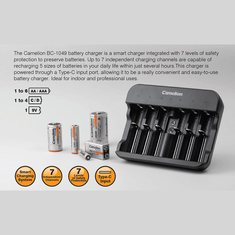 شارژر 1049 امکان شارژ باتری قلمی - نیم قلمی - بزرگ - متوسط و کتابی قابل شارژ را دارا میباشد.