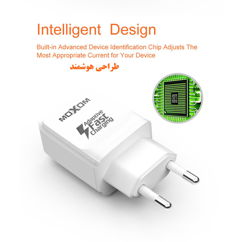 شارژر moxom kh-31Y با کیفیت ساخت عالی و توان خروج 2.4 آمپر یکی از بهترین نمونه های شارژر های شرکتی موجود در بازار با امکان فست شارژ ورژن 3 (Qualcomm 3.0 Quick Charge)برای گوشیهایی که از این تکنولوژی بهره مندند این شارژر با داشتن استاندارد تولیدی بالا همانند شارژر اصلی بدون هیچ تغییر آمپری در توان خروجی گوشی شمارا شارژ می کند