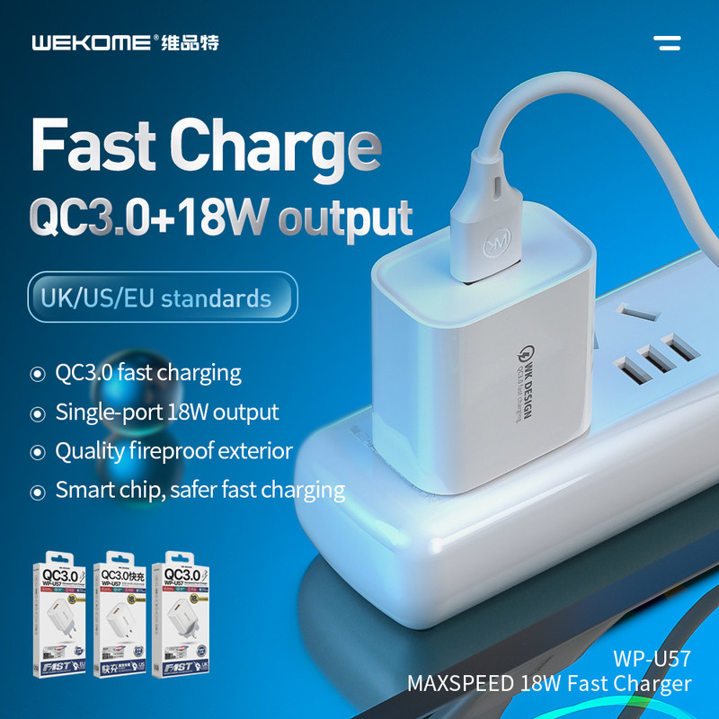 شارژر ویکوم مدل WP-U57 یک شارژر دیواری 18 واتی با طراحی جمع و جور و شیک است که برای شارژ سریع طیف وسیعی از دستگاه‌ها، از جمله گوشی‌های هوشمند، تبلت‌ها و دوربین‌ها ایده‌آل است. این شارژر دارای یک پورت USB 3.0 با پشتیبانی از فناوری Quick Charge 3.0 است که به شما امکان می‌دهد دستگاه‌های خود را با سرعتی بالا شارژ کنید. در این شارژر از چیپ هوشمندی استفاده شده است که شارژی ایمن و سریع را به شما ارائه میدهد و همچنین دارای چندین لایه محافظتی جهت محافظت از دستگاه و شارژر در حین استفاده میباشد.
