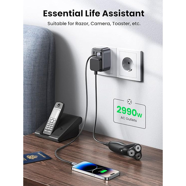 | توضیحات | تکنولوژی GaN3، دارای قابلیت fast شارژ، دارای تبدیل 3 به 2 برق، قابل اتصال به انواع دستگاهها، مناسب برای مسافرت |