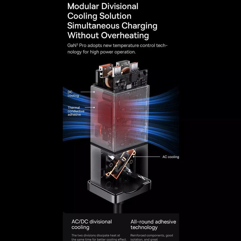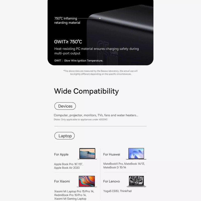 شارژر رومیزی بیسوس از پلی کربنات نسوز و مواد مقاوم در برابر شعله UL94V-0 که تا دمای 750 درجه سانتیگراد مقاوم هستند ساخته شده؛ به لطف این مواد بدنهای فوقالعاده مقاوم در برابر آسیب و حرارت بالا دارد.