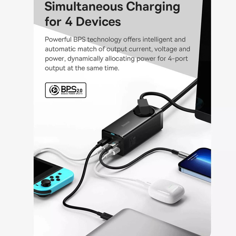 استفاده همزمان از چند وسیله برقی نیاز به خرید چندراهی برق که از کیفیت بالایی برخوردار باشد و در عین باکیفیت بودن ایمنی را هم تضمین کند بسیار اهمیت پیدا میکند. در این راستا بیسوس سنتر شارژر رومیزی از برند بیسوس با عنوان Baseus extension cord socket with 65W 5-port power adapter CCGAN65-1ACE BS-PSZM000901 را به لیست محصولاتش اضافه کرده که با داشتن یک سوکت برق و دو پورت تایپ سی و یک یو اس بی امکان اتصال چند دستگاه به صورت همزمان برایتان فراهم خواهد بود.