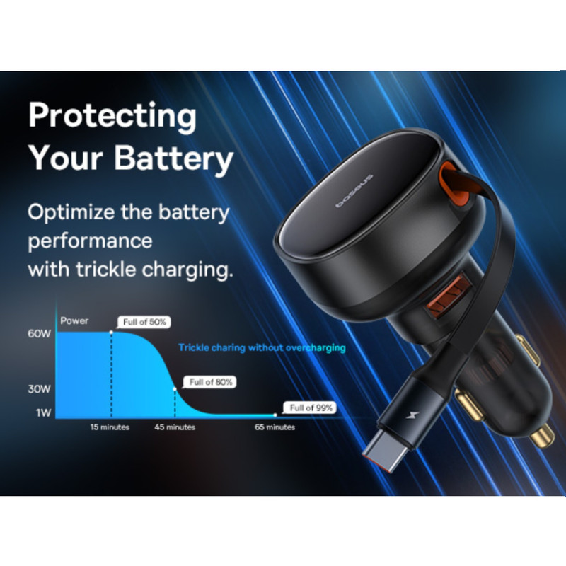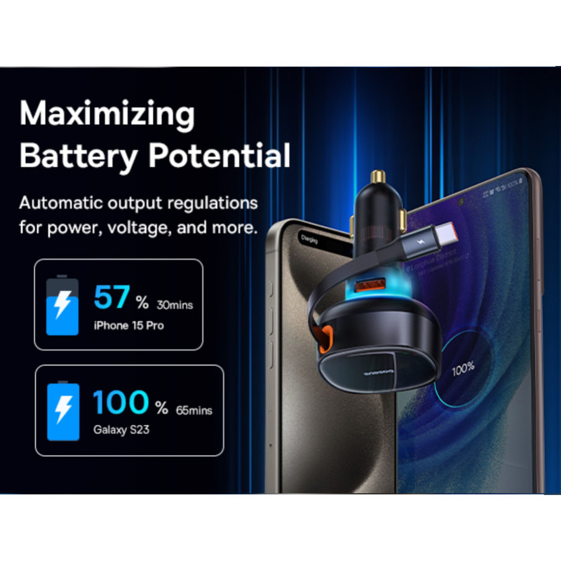 استفاده از شارژر فندکی می‌تواند باعث قابلیت شارژ سریع و آسان دستگاه‌های الکترونیکی شما در حین مسافرت با خودرو باشد و در نتیجه از زمان و انرژی شما صرفه‌جویی کند. کمپانی بیسوس که یکی از بهترین شرکت‌ها در زمینه تولید انواع شارژر و ... می‌باشد. جدیدا یکی از کارآمد‌ترین محصول خود با نام شارژر فندکی Enjoyment Pro Retractable USB-C Car Charger 60W را روانه بازار کرده است. این محصول با داشتن یک کابل تایپ‌سی متصل به بدنه و یک درگاه USB امکان شارژ همزمان دو دستگاه را برایتان فراهم می‌کند.