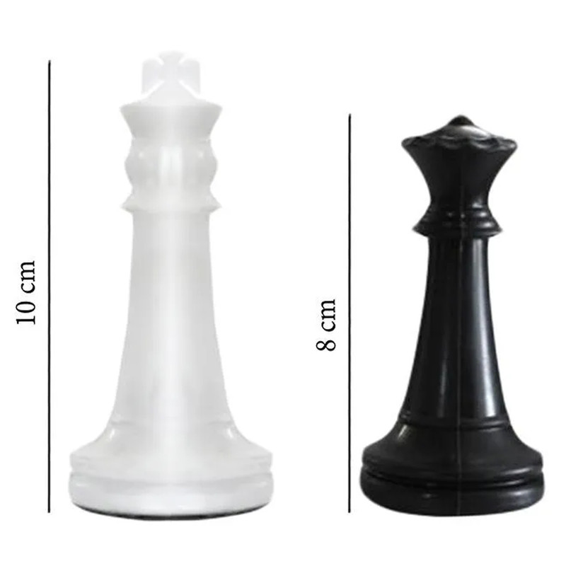 خانه هایش از دو رنگ سبز و سفید تشکیل شده است. دارای 16 مهره سیاه و 16 مهره سفید از جنس پلاستیک است که وزن سنگین و توپُر بودن آنها از افتادن مهره ها جلوگیری می کند و حرکت آن ها روی صفحه بسیار راحت می باشد و حس خوبی از بازی کردن با آن را تجربه خواهید کرد .طول مهره ی وزیر در این شطرنج، 8 سانتی متر و مهره ی شاه 10 سانتی متر می باشد. این مجموعه به همراه کیف دسته دارعرضه شده است که حمل آن را برایتان راحت می کند.