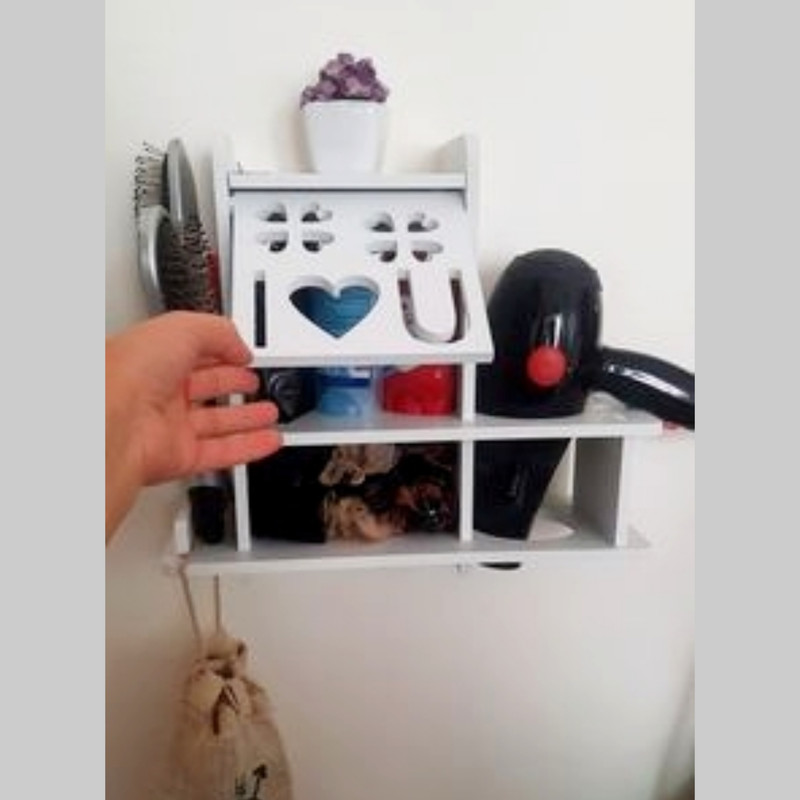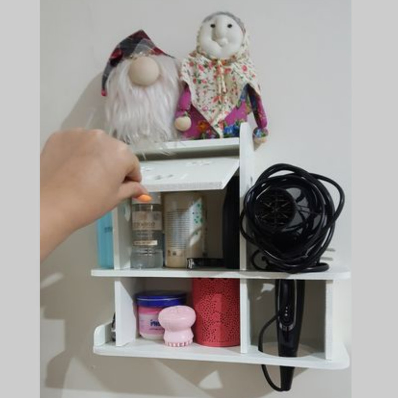 شلف نگهدارنده سشوار خونه خاص از جنس پی وی سی مقاوم و با کیفیت تولید شده که در برابر رطوبت و آب کاملاً مقاوم می باشد ، به طوری که در صورت نیاز می توانید از آن درون مکان هایی با رطوبت بالا نظیر حمام و سرویس بهداشتی استفاده کنید و یا اینکه در صورت نیاز به سادگی آن را بشویید . شلف سشوار دارای یک استند برای نگهداری سشوار در قسمت بیرونی می باشد که به طور کامل آن را پوشش داده و نگه می دارد . در کنار استند که شامل دو سوراخ به قطر 8 سانتی متر با فاصله از یکدیگر می باشند یک حلقه برای نگهداری سیم سشوار تعبیه شده که با استفاده از آن می توانید دوشاخ برق سشوار را مهار و از آویزان بودن و یا حتی آسیب رسیدن به آن جلوگیری کنید . فضای کنار نگهدارنده سشوار شامل دو محفظه درب دار و بدون درب در دو طبقه می باشد که از آنها برای نگهداری وسایل و لوازم بهداشتی در ابعاد کوچک می توانید استفاده نمایید . در کنار محفظه ها نیز یک استند برای نگهداری برس در حالت ایستاده تعبیه شده است. رنگ سفید این محصول جنس پی وی سی و قابل شستشو است و سایر رنگها (نسکافه ای، قهوه ای و ...) از جنس mdf بوده، قابل شستشو نمی باشد ولی با توجه به رنگ دکور شما می تواند زیبا و در خور توجه باشد. این محصول طراحی و تولید خونه خاص بوده و فقط با کارتن برند خونه خاص ارسال می شود