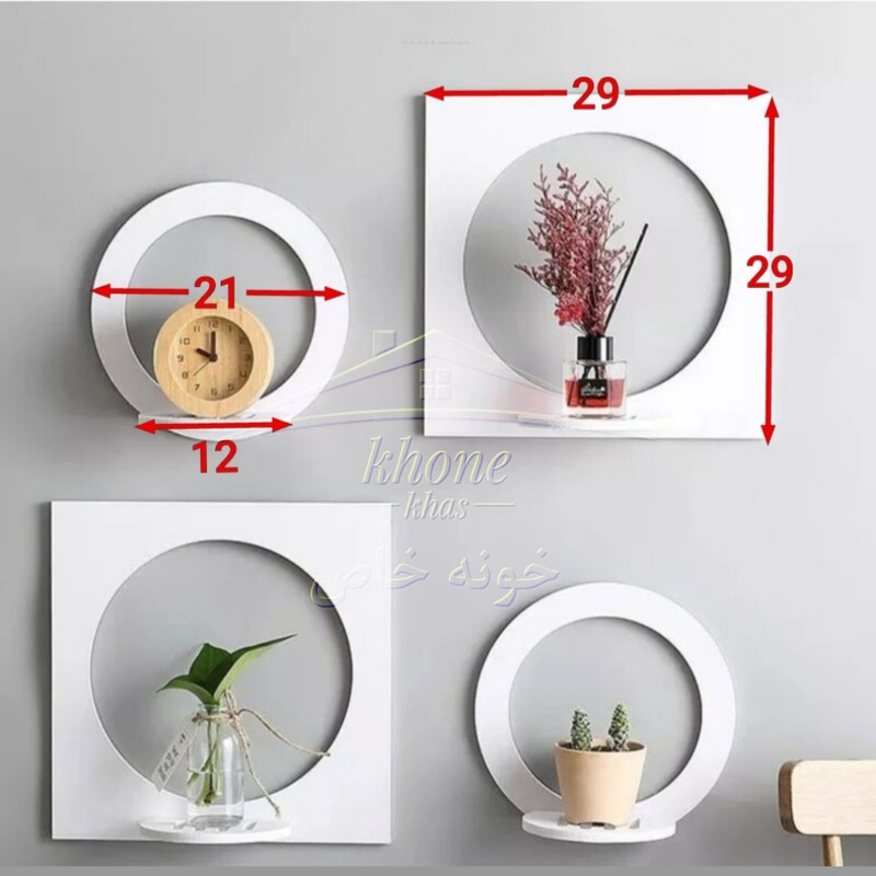 شلف دیواری دایره مربع محصول ایرانی خونه خاص بوده که از جنس پی وی سی درجه یک تولید شده است. این محصول با ظاهری ساده نمایی هندسی بسیار زیبایی دارد .ترکیب 4 عددی این شلف ها در زوایای مختلف در کنار هم جلوه های متفاوتی به منزل یا محل کار شما می دهد. این محصول از جنس پی وی سی با کیفیت تولید شده که مقاومت کامل در برابر آب و رطوبت را دارا است ، بنابراین در صورت نیاز به سادگی می توانید آن را تمیز کنید و یا حتی کاملا بشویید . طراحی ظاهری شلف دو جفت دایره و مربع زیبا می باشد که بر روی قسمت پایینی خود یک کفی جهت قرار دادن لوازم تزیینی کوچک دارد . رنگ سفید این محصول جنس پی وی سی و قابل شستشو است و سایر رنگها (نسکافه ای، قهوه ای و ...) از جنس mdf بوده، قابل شستشو نمی باشد ولی با توجه به رنگ دکور شما می تواند زیبا و در خور توجه باشد. محصول اصلی با ابعاد اصلی و کیفیت عالی فقط با برند و بسته بندی خونه خاص ارسال می شود.